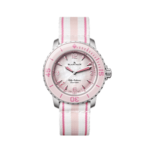 BLANCPAIN wristwatch, Fifty Fathoms 38.2 mm, titanium,. fabric strap, with pin buckle, mother of pearl dial with index, automatic, Cal. 1315, centre seconds, satin finish, sapphire-crystal, 30 atm, pink Ref.:5007-12B44R-NAFA