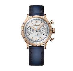 BREGUET wristwatch, Type XX Chronographe, 38.3 mm, 18K rose gold,. bracelet calfskin, silver dial with arab./Index, manual winding, Cal. 7278, sapphire-crystal, 5 atm, Ref.:2075BH/G9/398