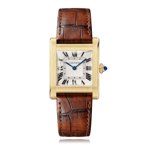 Wristwatch, CARTIER Tank 32.6 mm, yellow gold,. alligator leather strap, with folding clasp, rhodium-plated/grey dial with romains, manual winding, Cal. 070, sapphire-crystal, Not waterproof, Ref.:WGTA0108