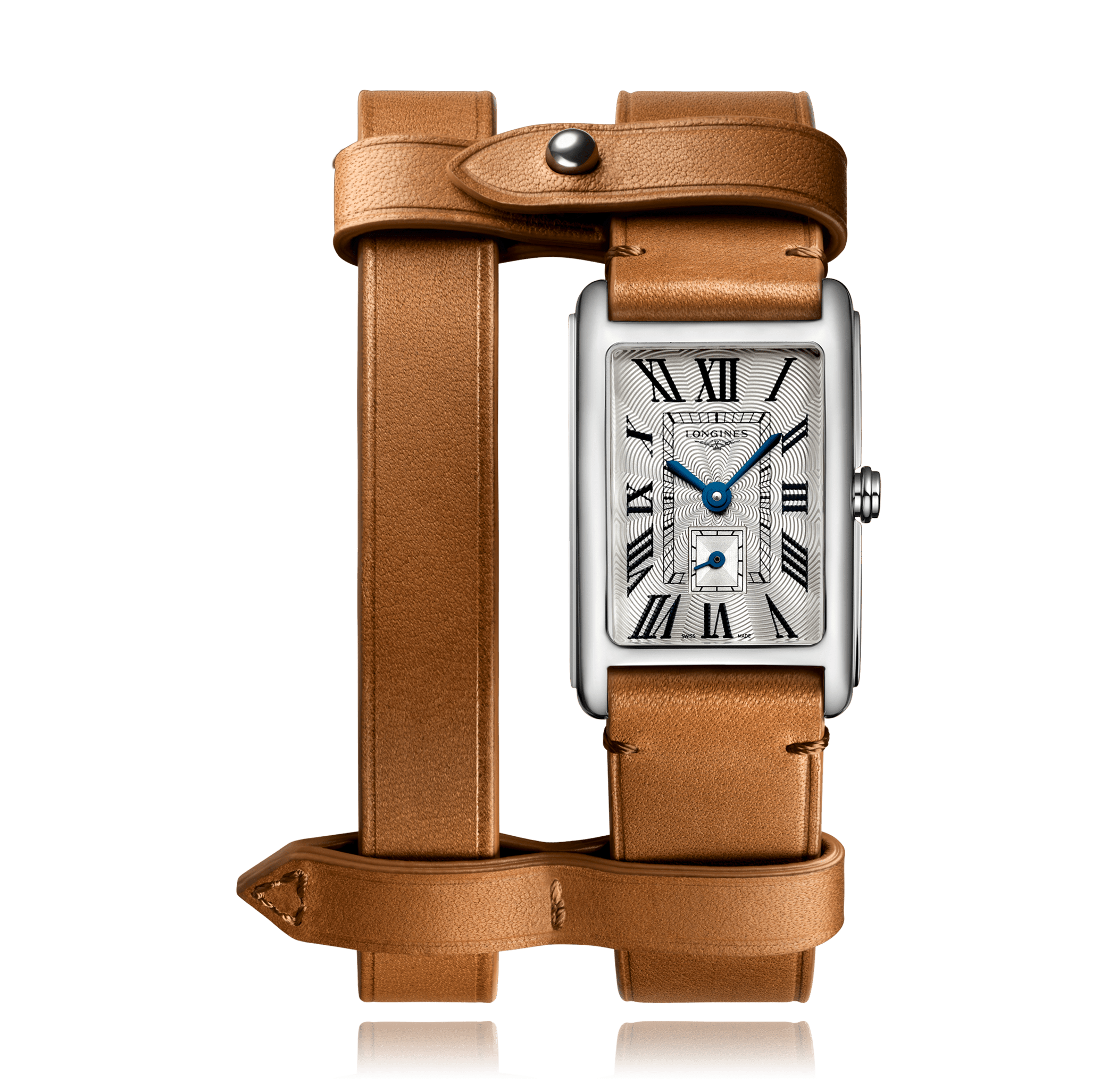 Wristwatch, LONGINES Dolcevita Midi, steel,. leather strap, with pin buckle, silver dial with romains, quartz, Cal. 178, small second indication, sapphire-crystal, 3 atm, Ref.:L5.255.4.71.B