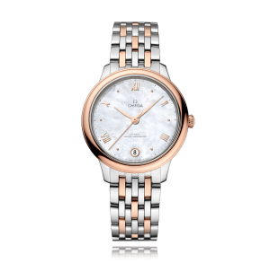 Wristwatch, OMEGA De Ville Prestige Co-Axial, 34 mm, steel/red gold,. steel/gold bracelet, mother of pearl dial with röm./Index, automatic master co-axial, Cal. 8800, centre seconds, polished, sapphire-crystal, 3 atm, Ref.:434.20.34.20.05.001