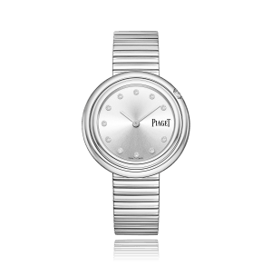 Wristwatch, PIAGET Possession 34 cm, steel,. steel bracelet, white dial with 11 diamonds, quartz, Cal. 356P, sapphire-crystal, 3 atm, 11 diamonds, total: 0.156 ct. Ref.:G0A48390