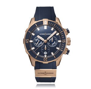 ULYSSE NARDIN chronograph, Marine 44 mm, red gold,. alligator leather strap, with folding clasp, blue dial automatic, Cal. UN-150, sapphire-crystal, 30 atm, Ref.:1502-170-3/93