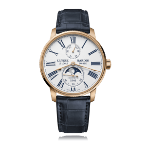 Wristwatch, ULYSSE NARDIN Marine 42 mm, rose gold, alligator leather strap, white dial automatic, Cal. Caliber UN-119, sapphire-crystal, 5 atm, Ref.:1192-310-0A/1A