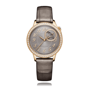 VACHERON & CONSTANTIN wristwatch, Egerie 35 mm, 18K rose gold,. alligator leather strap, with pin buckle, taupe dial with arabic, automatic, Cal. 1088, centre seconds, sapphire-crystal, 3 atm, taupe 92 diamonds, Dia.- Lünette Ref.:4605F/000R-B957