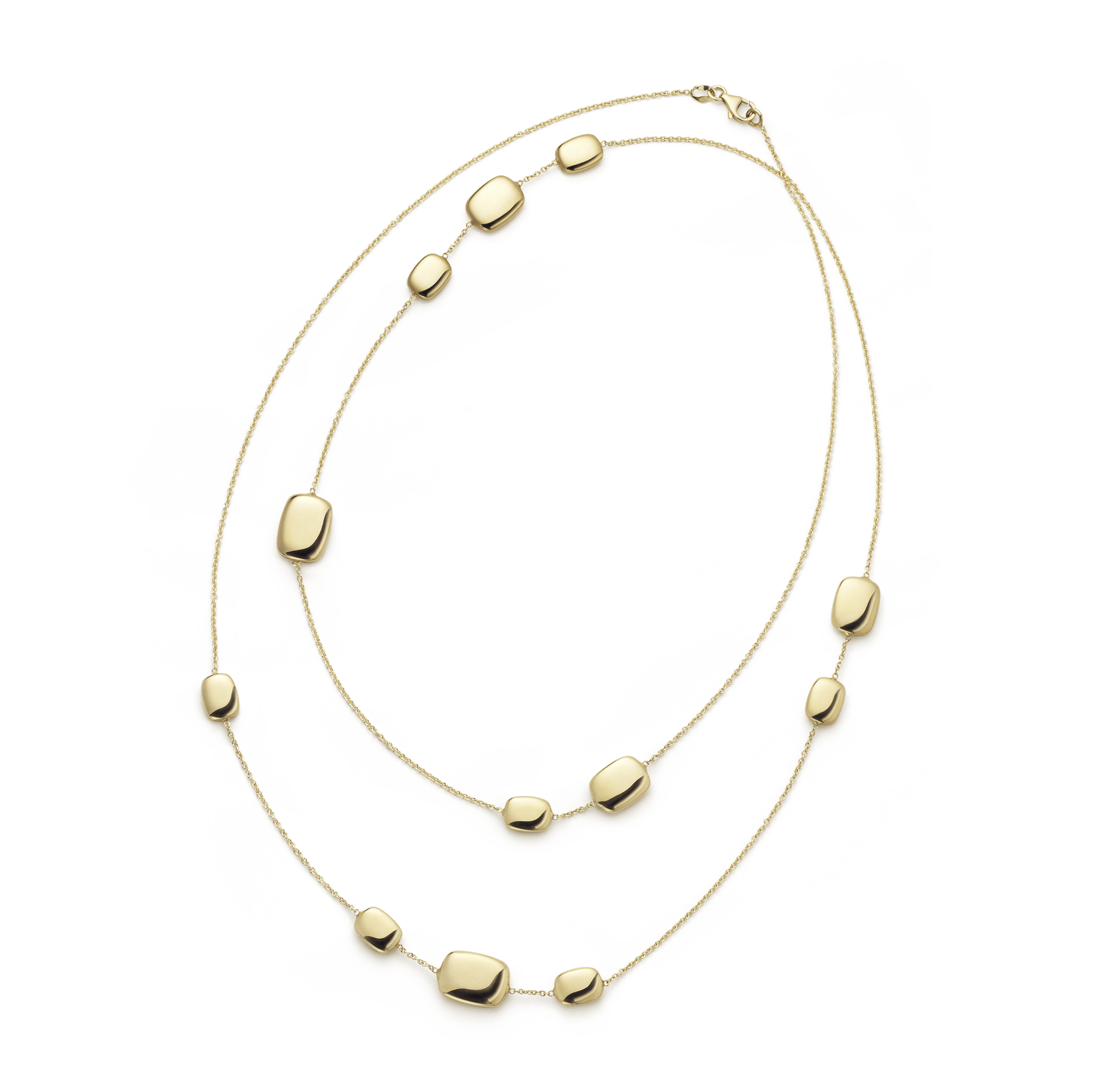 This 18 carat yellow sautoir gold chain with lobster clasp is everything a woman needs to crown her outfit. The 90 cm long piece is a real highlight, with its exquisite sparkle, largely thanks to the gold pieces in various sizes interspersed at regular intervals. These give this enchanting necklace a special appeal.