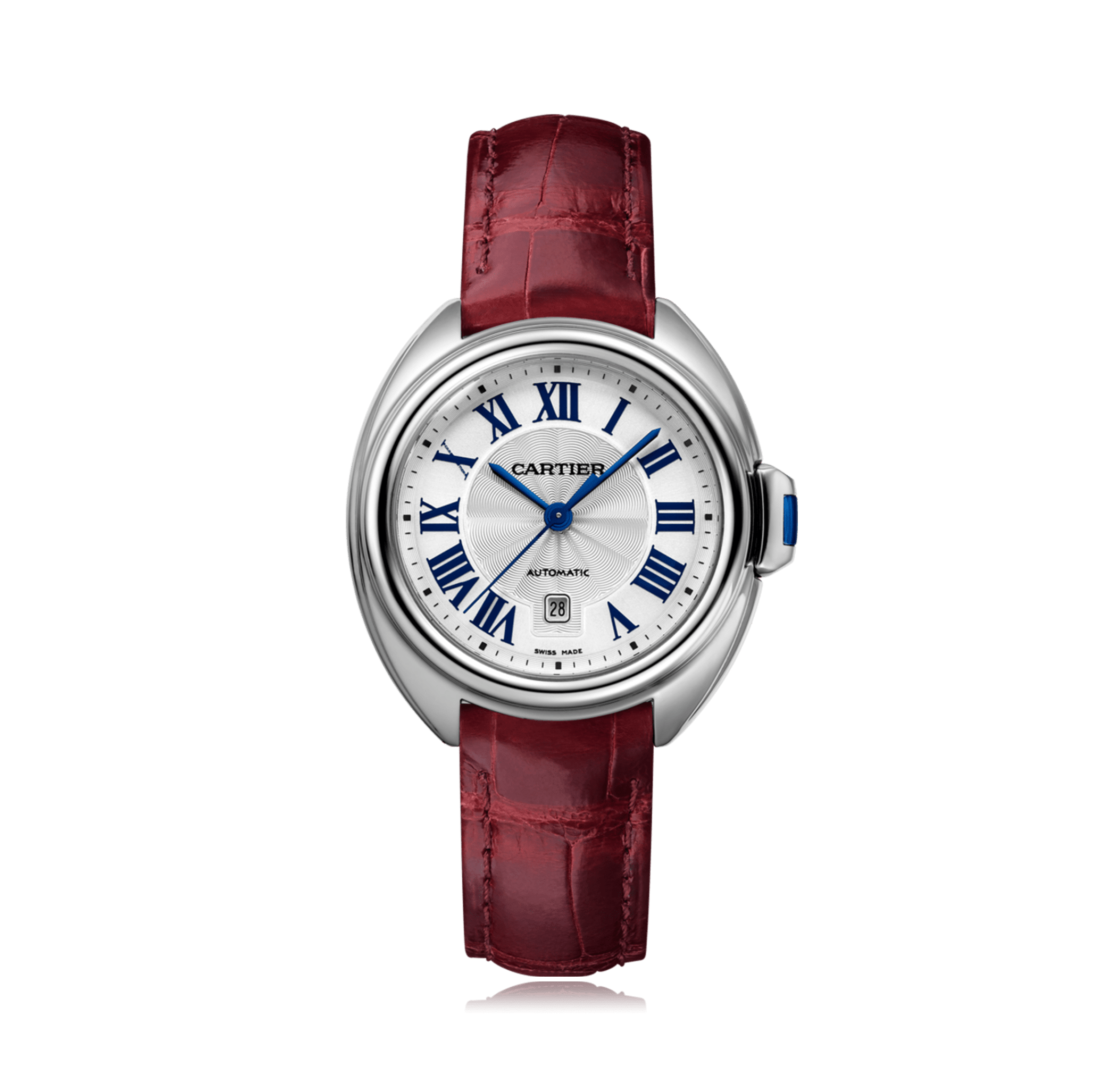 Wristwatch CARTIER Clé de Cartier 31mm, steel, Alligator strap, with folding clasp, silver dial with roman numerals, automatic Cal. 077, sapphire-crystal, 3 atm, Ref.:WSCL0016