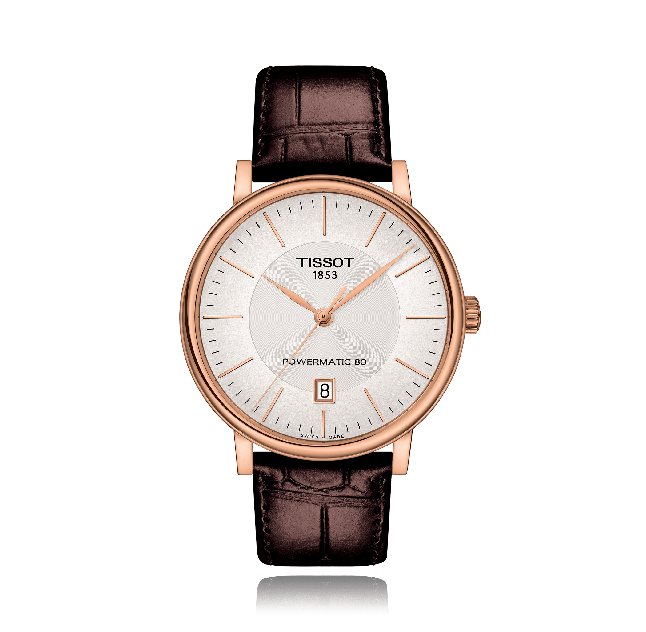 Wristwatch TISSOT T-Classic Carson, 40mm, steel/PVD, leather strap, with pin buckle, silver dial with index, automatic Cal. POWERMATIC 80.111, sapphire-crystal, 5 atm, Ref.:T122.407.36.031.00