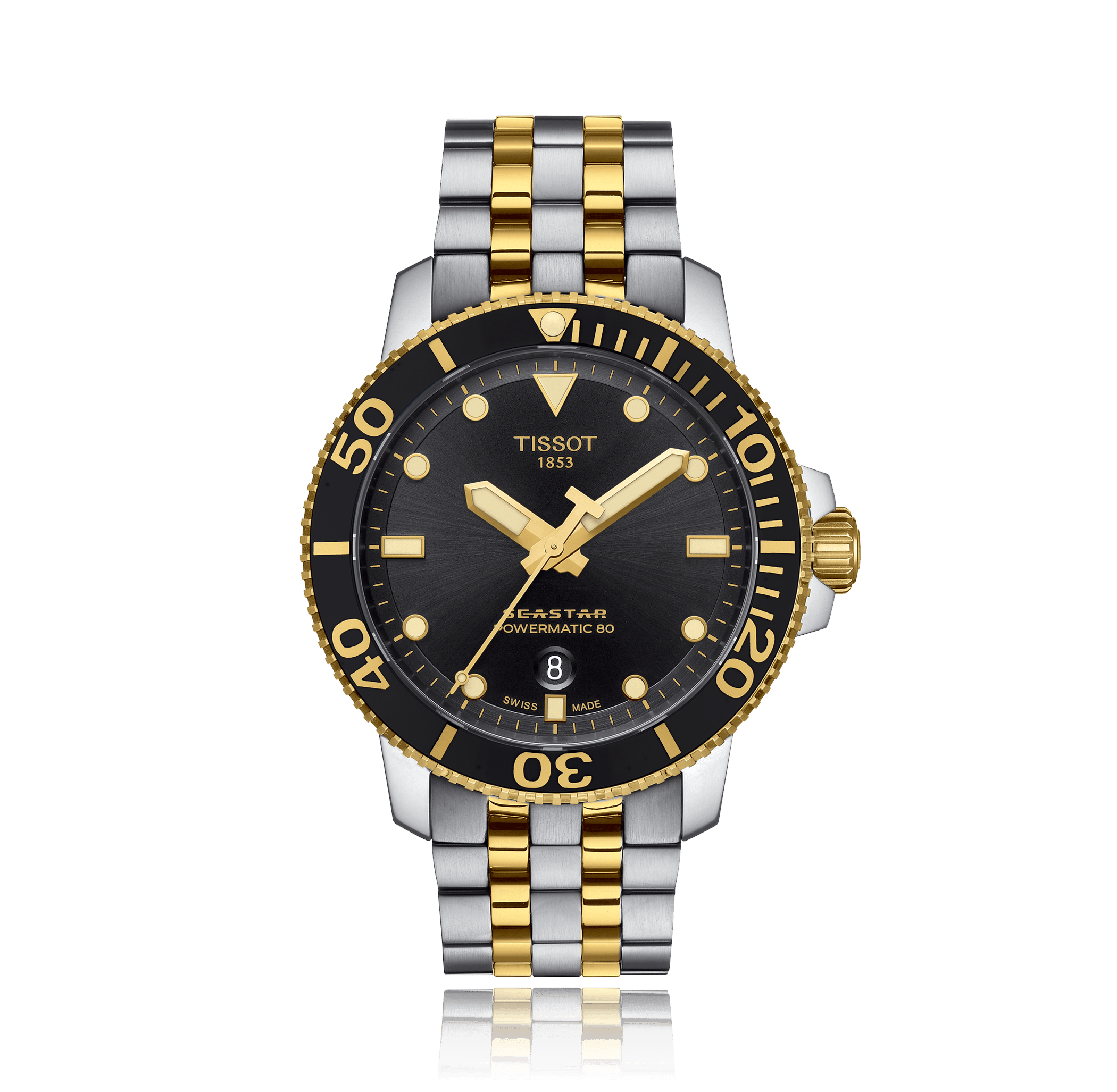 Diver's watch TISSOT T-Sport Seastar 1000, 43mm, steel/PVD, steel bracelet, with folding clasp, black dial with index, automatic Cal. Powermatic 80.111, sapphire-crystal, 30 atm, Ref.:T120.407.22.051.00