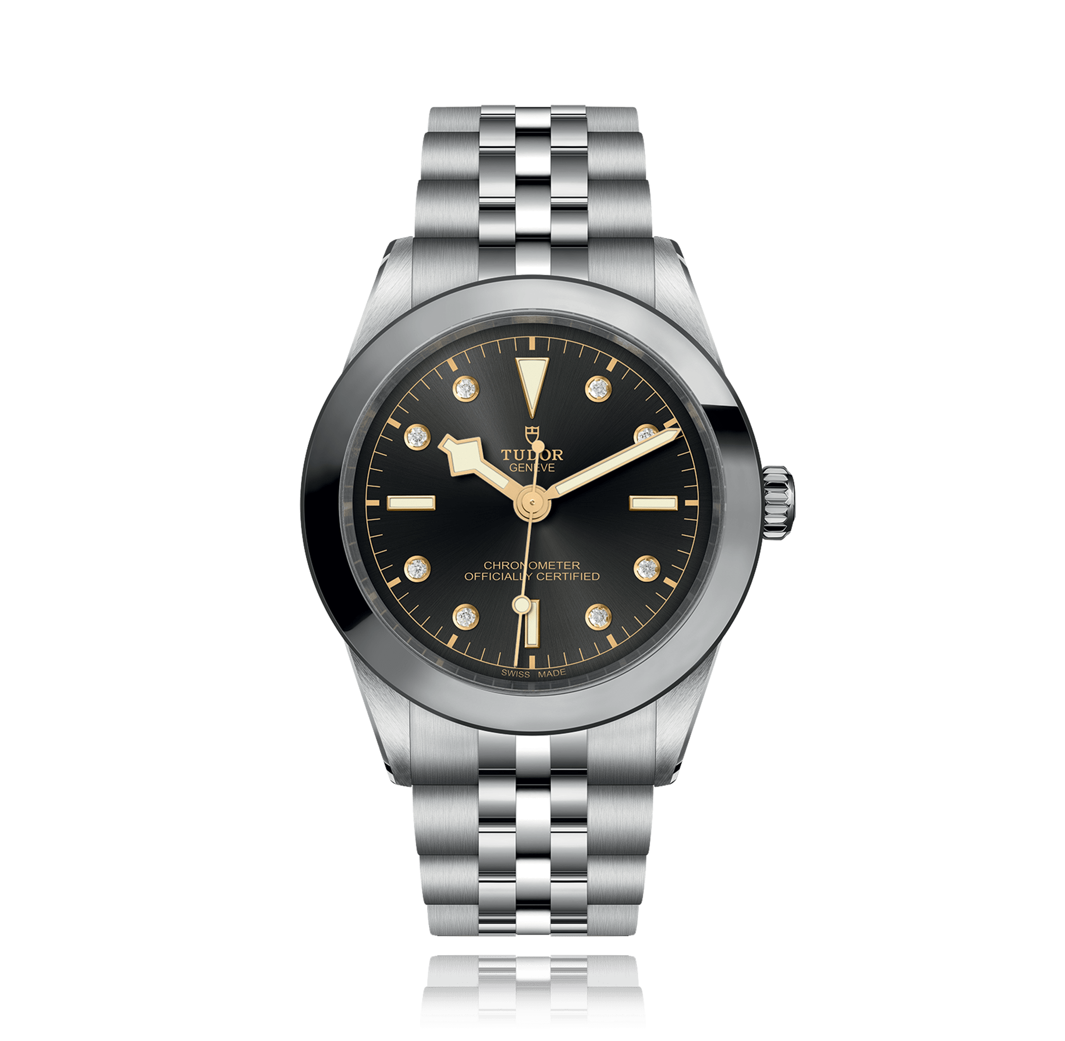 TUDOR wristwatch, Black Bay 39, 39 mm, steel,. steel bracelet, anthracite dial with index / diamonds, automatic, Cal. MT5602, centre seconds, sapphire-crystal, 10 atm/screw-down crown, Ref.:79660-65570