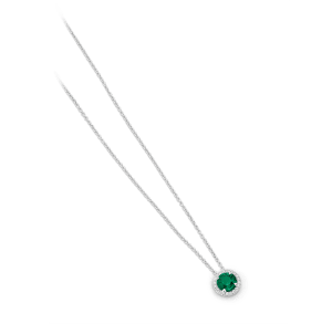 Pendant with chain Classics Big Three surround 18K white gold with snaplink clasp, length 45 cm, emerald (EO) with round cut. total 0.4 ct., 12 diamonds. with brilliant cut total 0.05 ct.. H- si