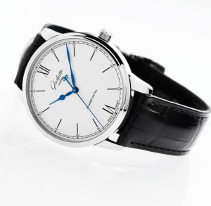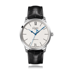 Wristwatch, GLASHÜTTE Senator Excellence, 40 mm, steel,. alligator leather strap, with pin buckle, silver dial with röm./Index, automatic, Cal. 36, centre seconds, sapphire-crystal, 5 atm, Ref.:1-36-01-01-02-01