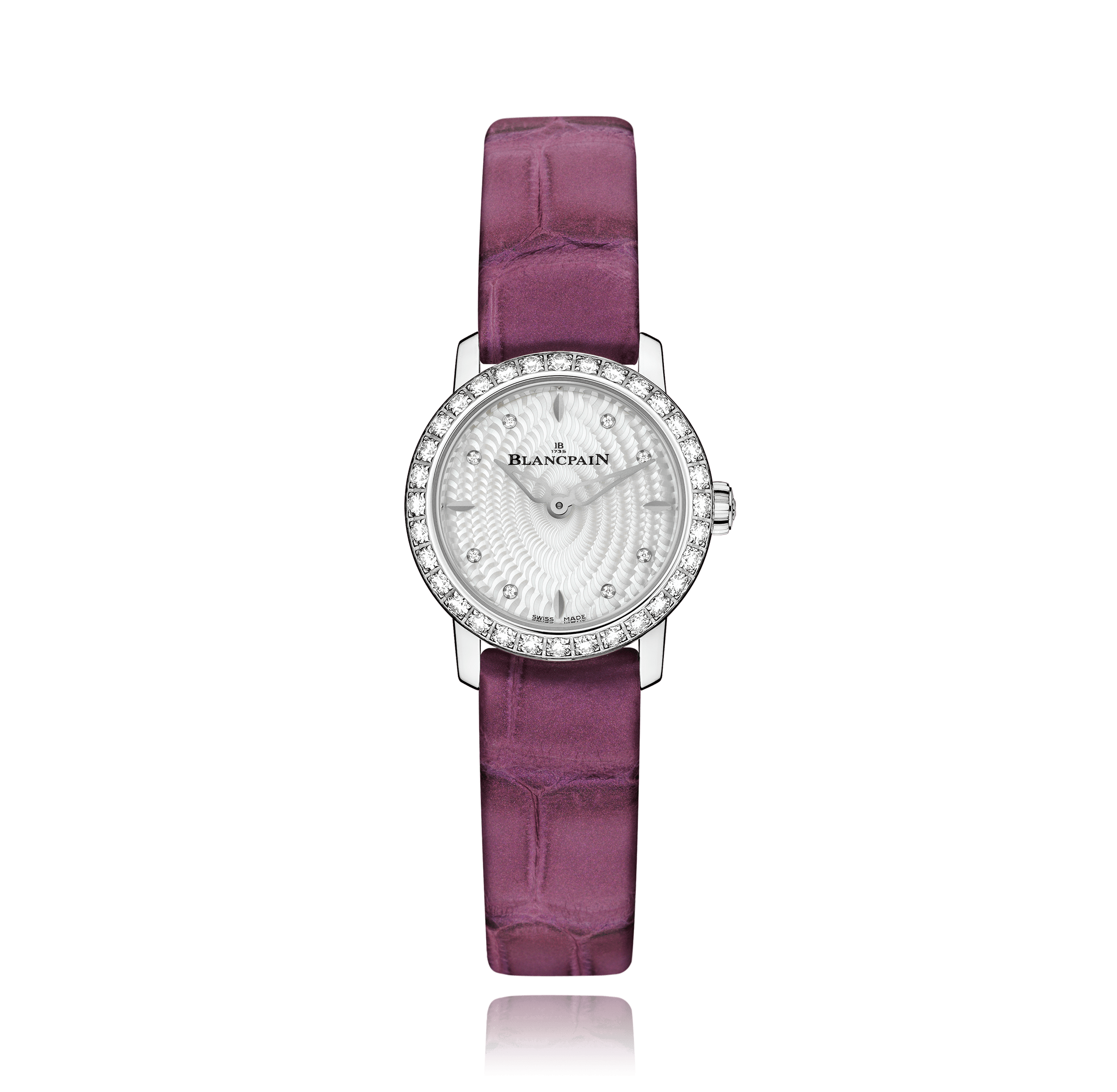 Blancpain Ladybird avec un boîtier de 22 mm en or blanc et un verre saphir, étanche; à l'intérieur se trouve le calibre automatique 615, cadran nacre diamants, indication: , bracelet alligator en cuir; accessoire: écrin (original), garantie de vente (original).