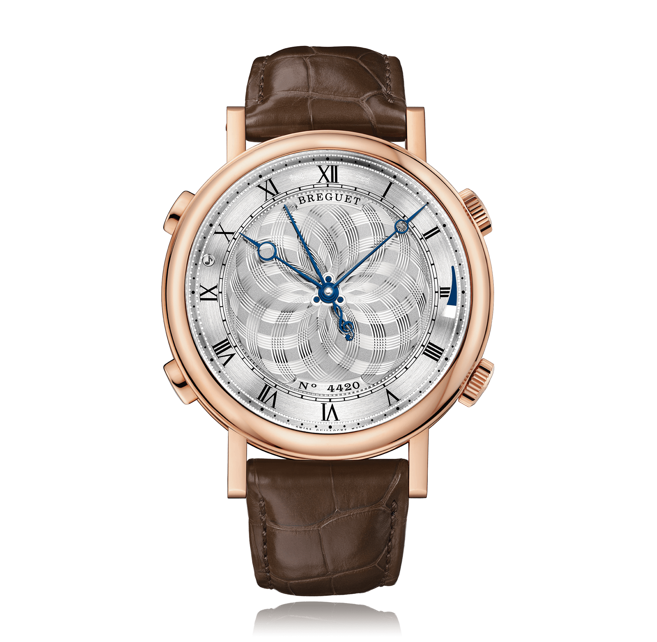 Montre-bracelet BREGUET Classique La Musicale, 48mm, or rose 18K, bracelet cuir, cadran: argent massif avec romains, automatique Calibre 901, glace saphir, avec avec musique, Ref.:7800BR/AA/9YV02