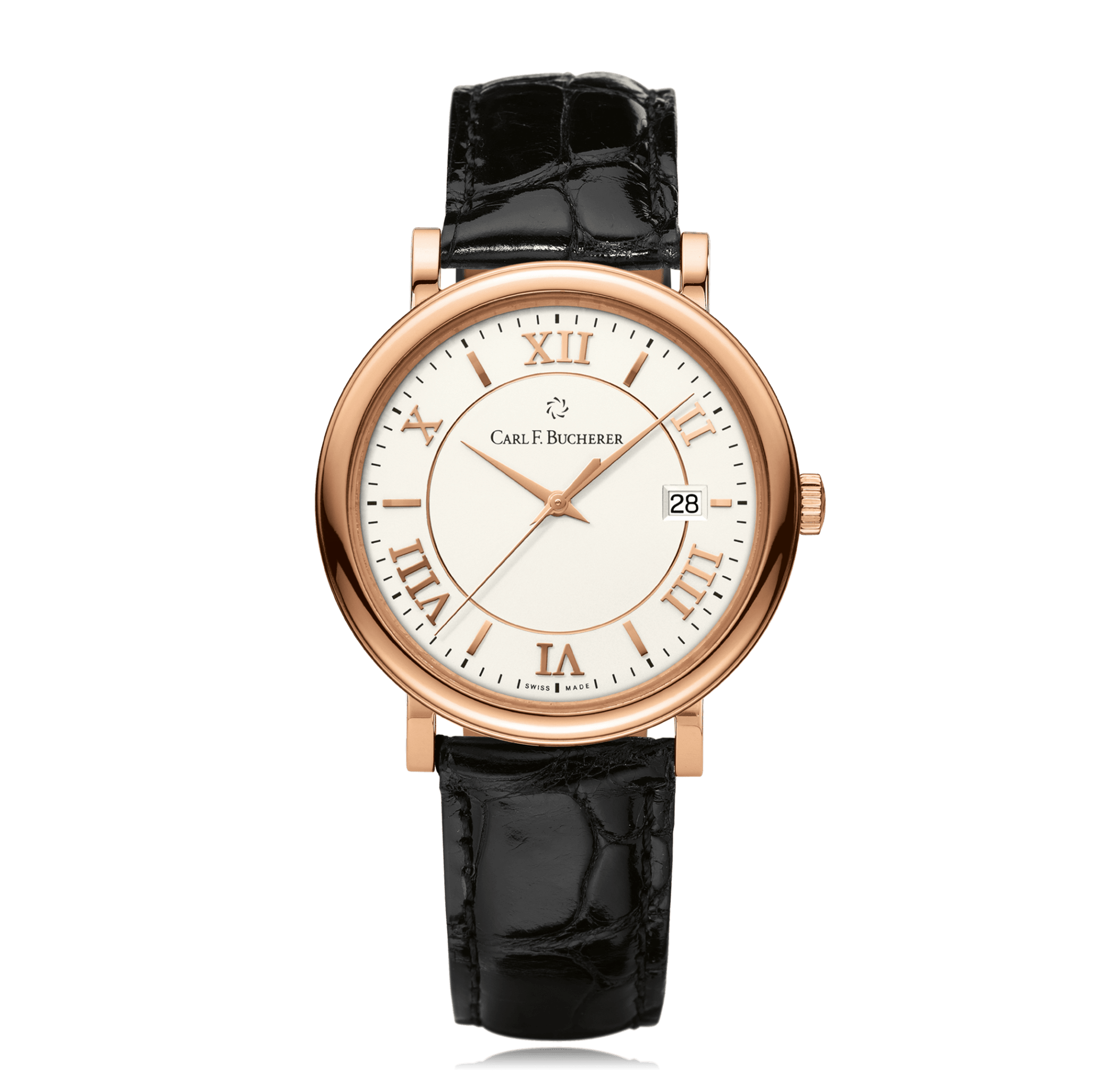 CARL F. BUCHERER Adamavi 39 mm montre-bracelet 18 C or rose automatique avec date ronde étanche cadran: argenté romains / indices, cuir alligator, Ref.:00.10311.03.15.01