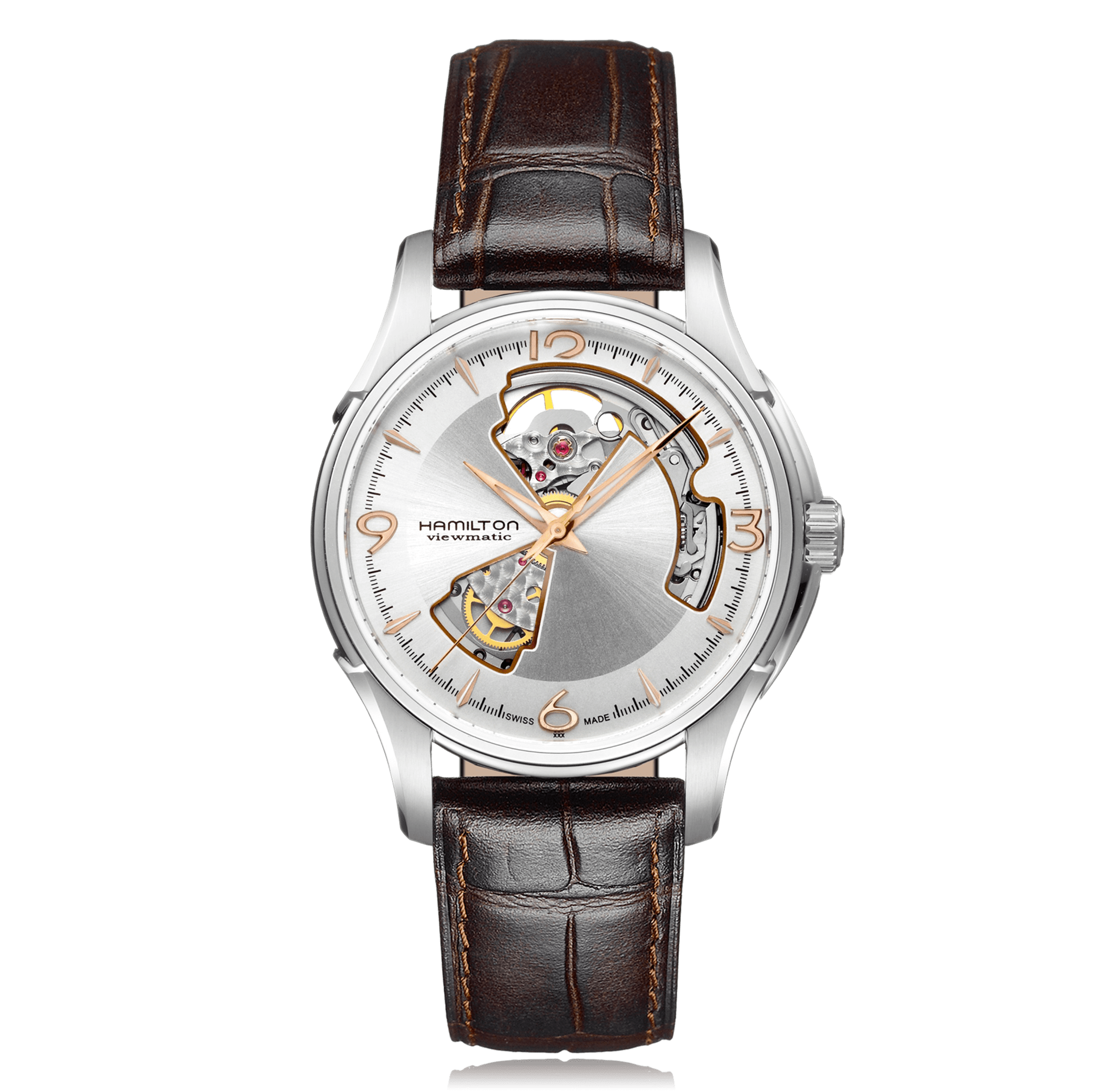 Montre-bracelet HAMILTON American Classic Jazzmaster, 40mm, acier bracelet cuir, cadran: argenté avec arabes / indices, automatique Calibre ETA 2824-2, glace saphir, 5 atm, Ref.:H32565555