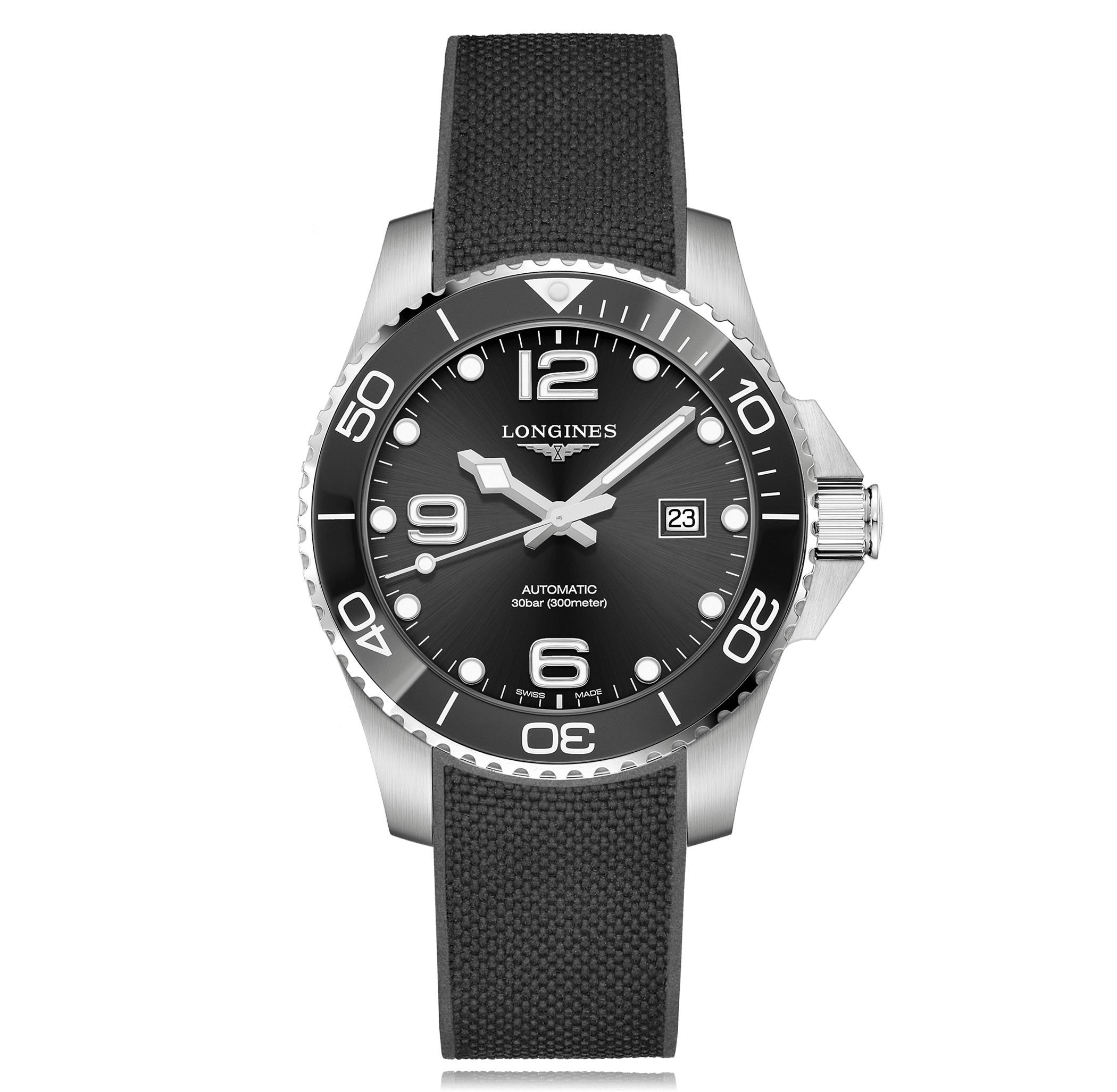 Montre-bracelet LONGINES HydroConquest 43mm, acier avec boucle déployante, cadran: noir avec arabes / indices, automatique Calibre 619/888, glace saphir, 30 atm/couronne vissée, Ref.:L3.782.4.56.9