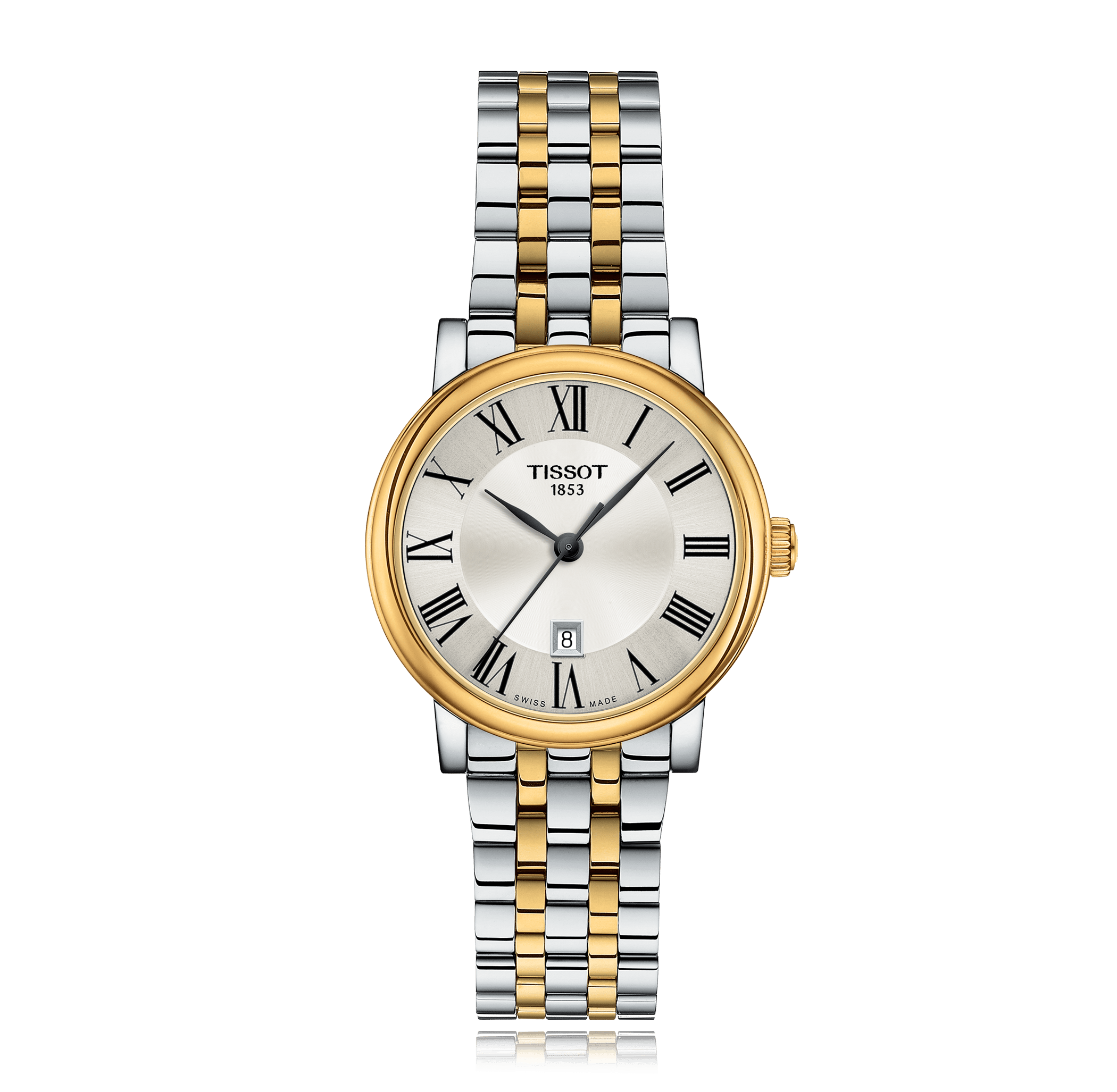 Montre-bracelet TISSOT T-Classic Carson, 30mm, acier/PVD bracelet acier/PVD, avec boucle déployante, cadran: beige avec romains, quartz glace saphir, 5 atm, Ref.:T122.210.22.033.00