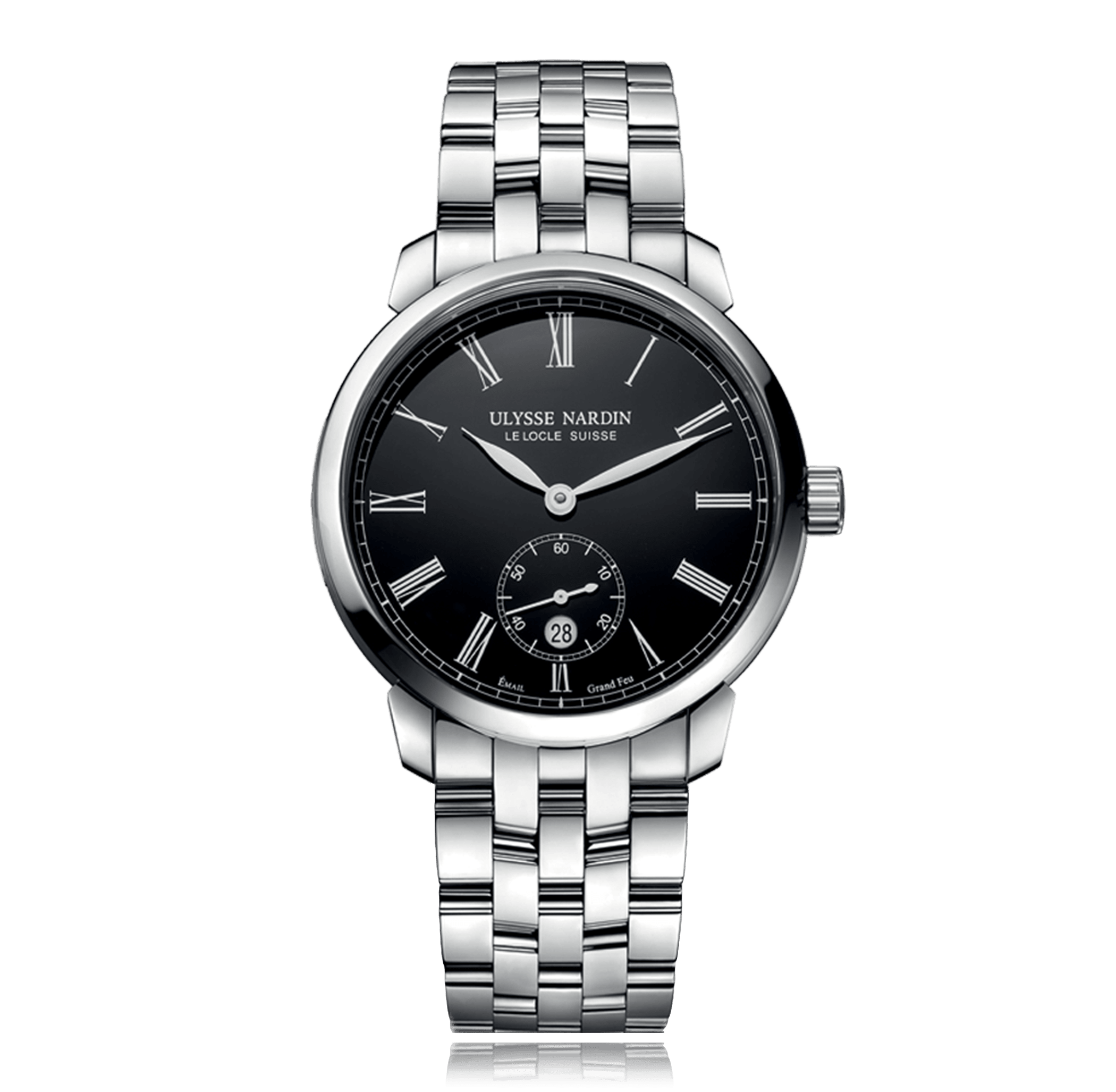Montre-bracelet ULYSSE NARDIN Classico 40 mm, acier bracelet acier, avec boucle déployante, cadran: noir automatique Calibre CAL-320, glace saphir, 3 atm, Ref.:3203-136-7/32