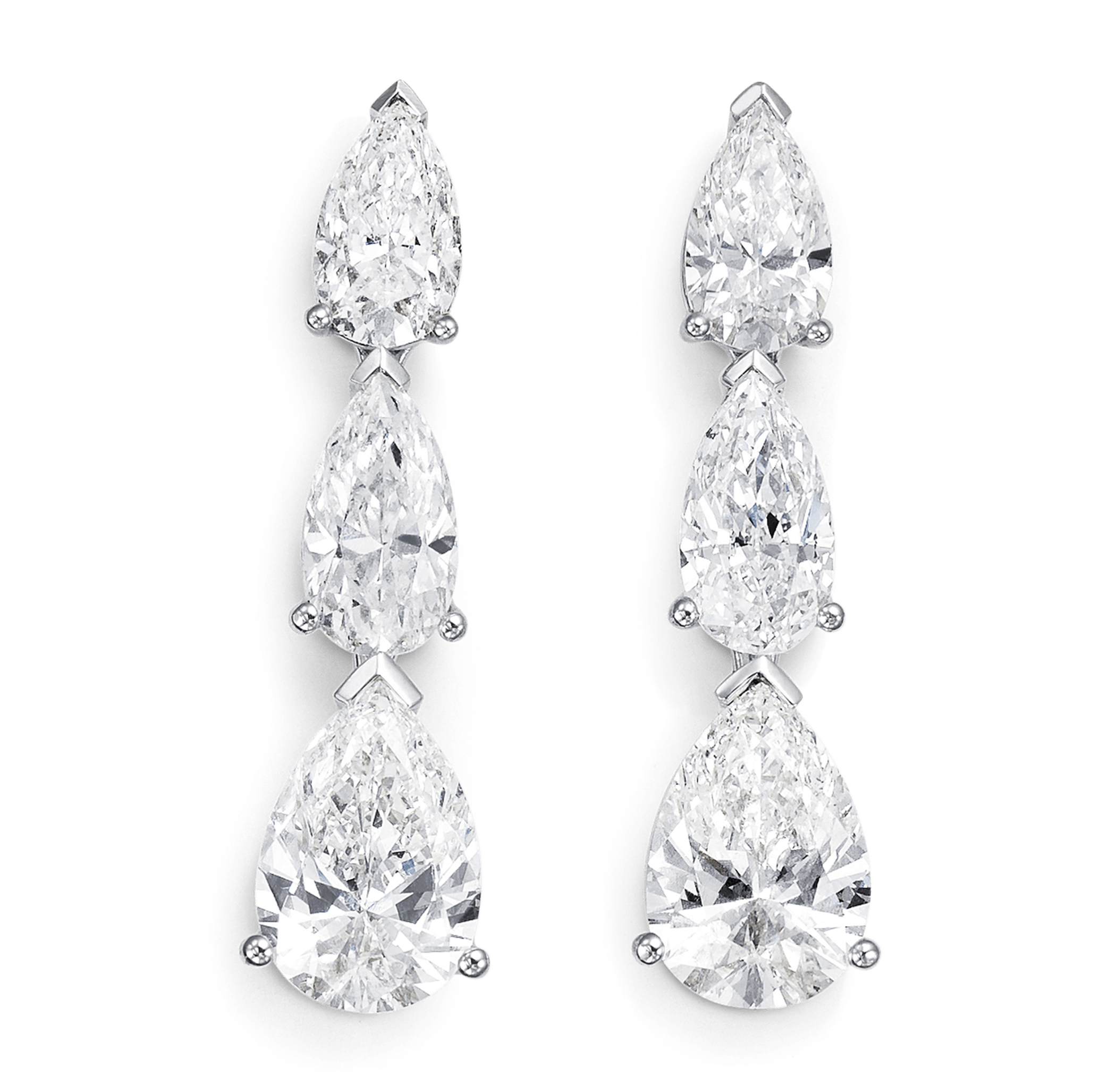 Ear pins Classics pendant 18K white gold 2 diamonds with pear cut total 3.03 ct., 4 diamonds with pear cut total 2.68 ct.