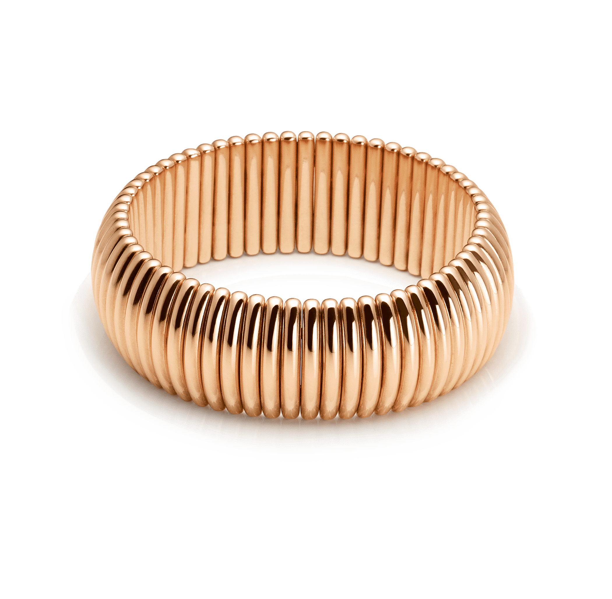 Among the highlights of this flexible bangle are the refined craftsmanship, the exquisite material and the way it can be slipped onto the wrist with one simple gesture. This bangle, made from 18 carat rose gold, is 16 cm long and 4.8 cm in diameter. It is an exquisite, fashionable accessory suitable for any look and any occasion.