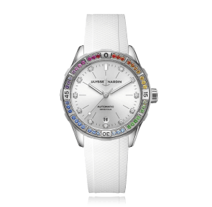 Wristwatch, ULYSSE NARDIN Diver 39 mm, steel, rubber strap, silver dial automatic, Cal. Caliber UN-816, sapphire-crystal, Ref.:8163-182B1LE-1A-RAIN/3A