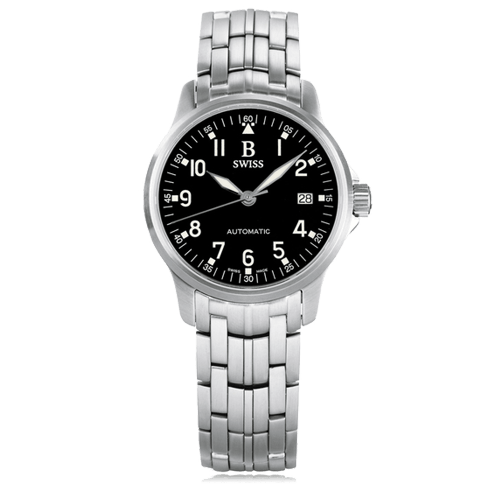 B SWISS FLIGHTSTAR gent's wristwatch, steel automatic with date water-resistant cadran: black arabes, steel bracelet glass sapphire, Case No. 00.50601.08.32.21