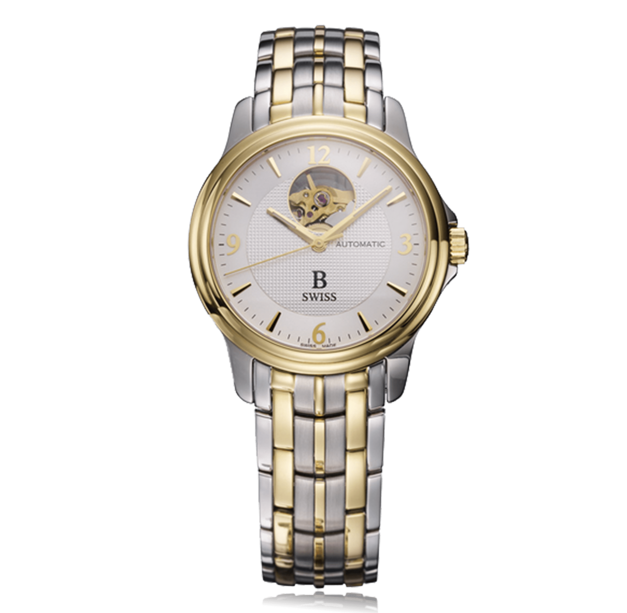 B SWISS PRESTIGE Open Heart gent's wristwatch, steel/PVD automatic 3 atm cadran: silver arab./Index, steel/PVD bracelet glass sapphire, Case No. 00.50501.34.16.22