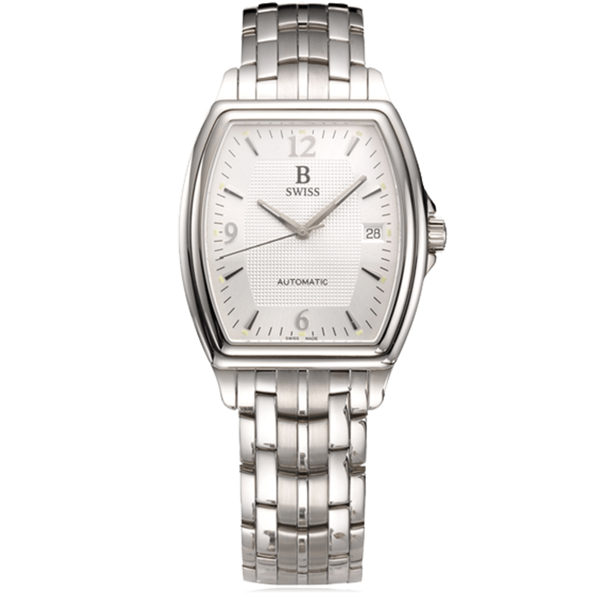 B SWISS PRESTIGE gent's wristwatch, steel automatic with date barrel 3 atm cadran: silver arab./Index, steel bracelet glass sapphire, Case No. 00.50505.08.16.21