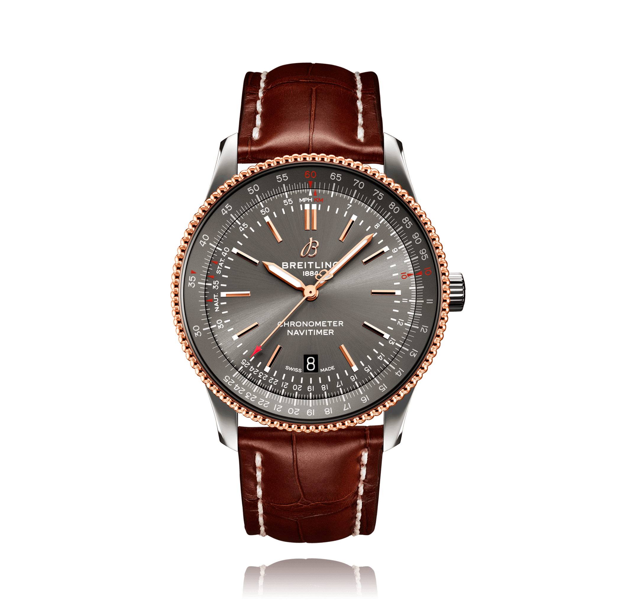 Wristwatch, BREITLING Navitimer 1 Automatic 41, 41 mm, steel/red gold, alligator leather strap, with folding clasp, anthracite dial with index, automatic, Cal. Breitling 17, centre seconds, sapphire-crystal, 3 atm, Ref.:U17326121M1P2