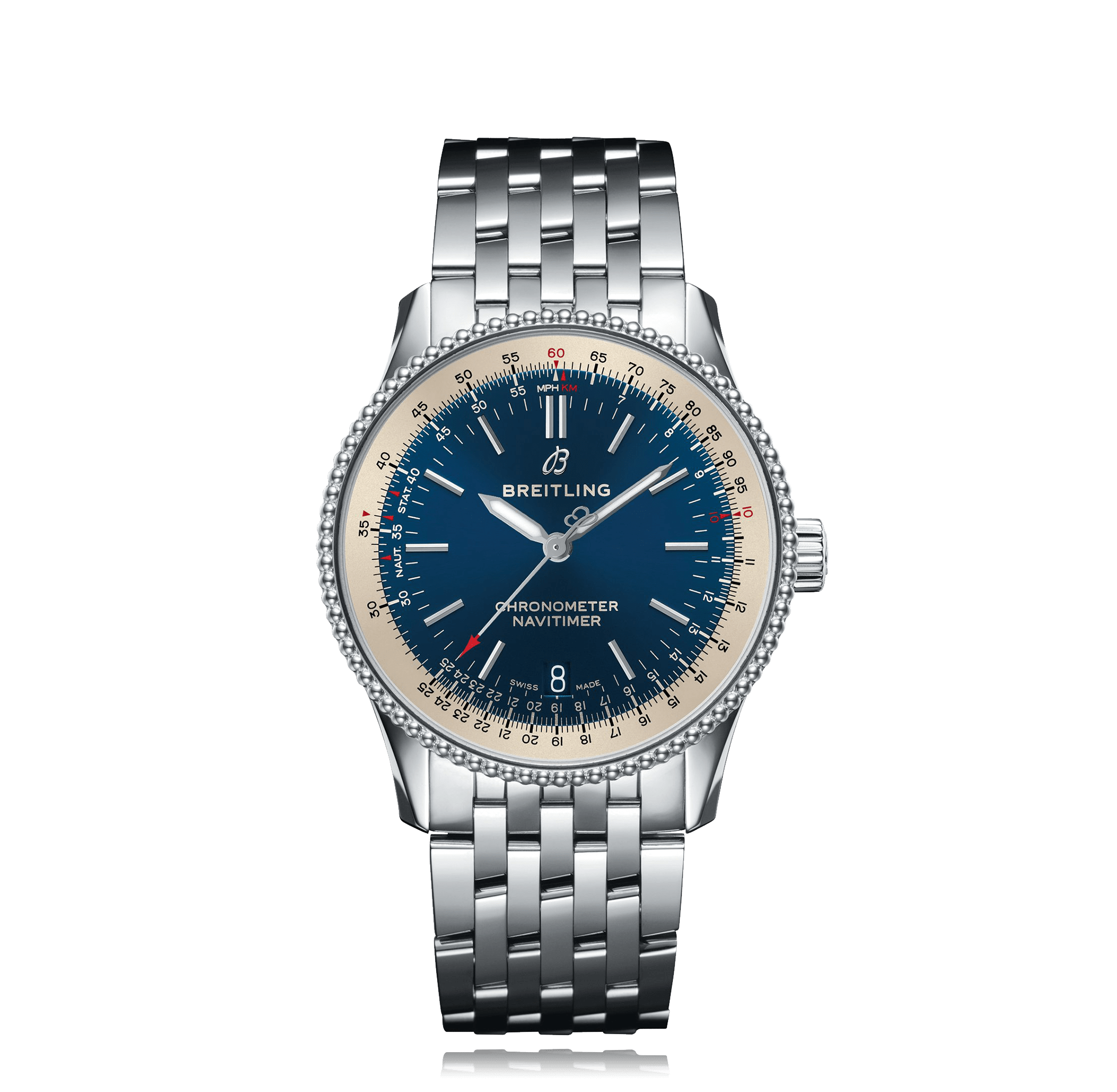 Wristwatch BREITLING Navitimer 1 Automatic 38, 38mm, steel, Professional III steel bracelet, blue dial with index, automatic Cal. Breitling 17, sapphire-crystal, 3 atm, Ref.:A17325211C1A1