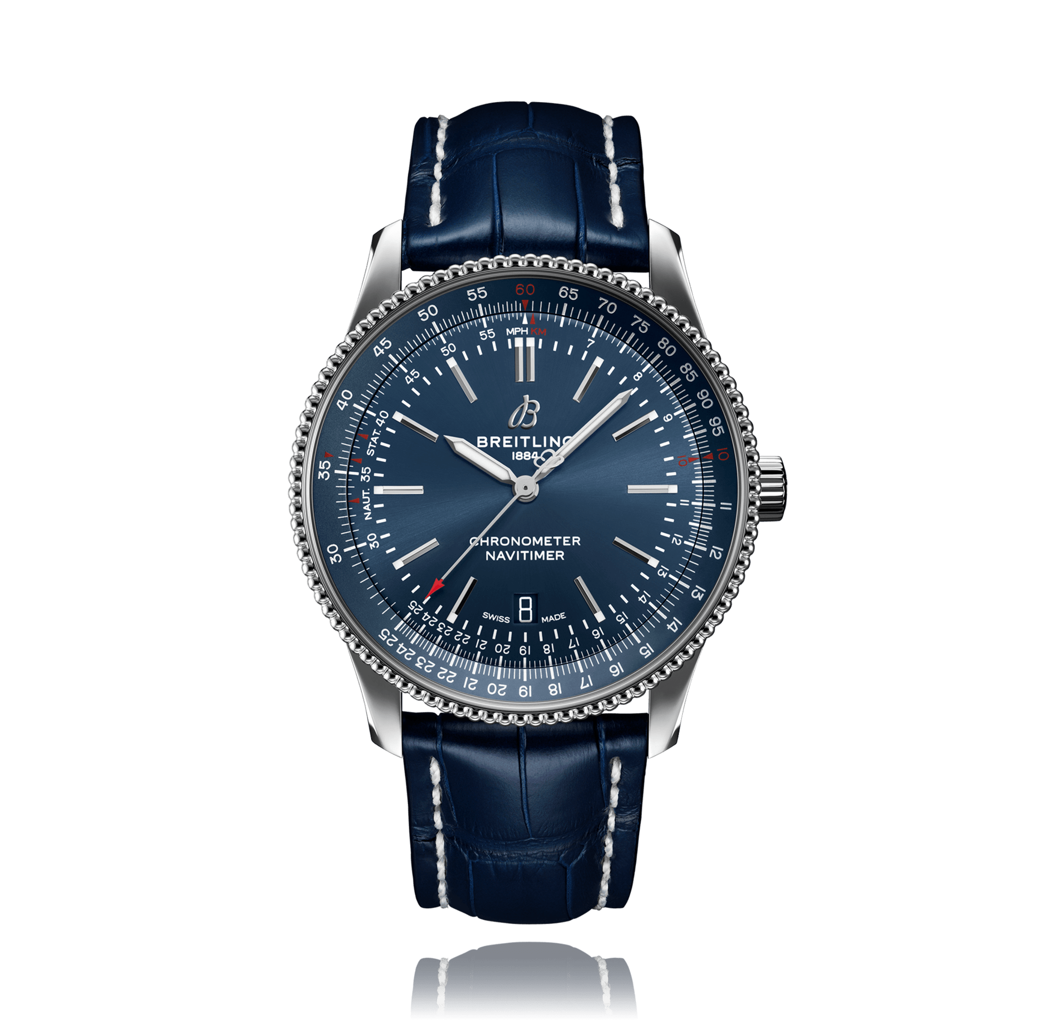 Wristwatch, BREITLING Navitimer Automatic 41, 41 mm, steel,. alligator leather strap, with pin buckle, blue dial with index, automatic, Cal. Breitling 17, centre seconds, sapphire-crystal, 3 atm, Ref.:A17326161C1P3