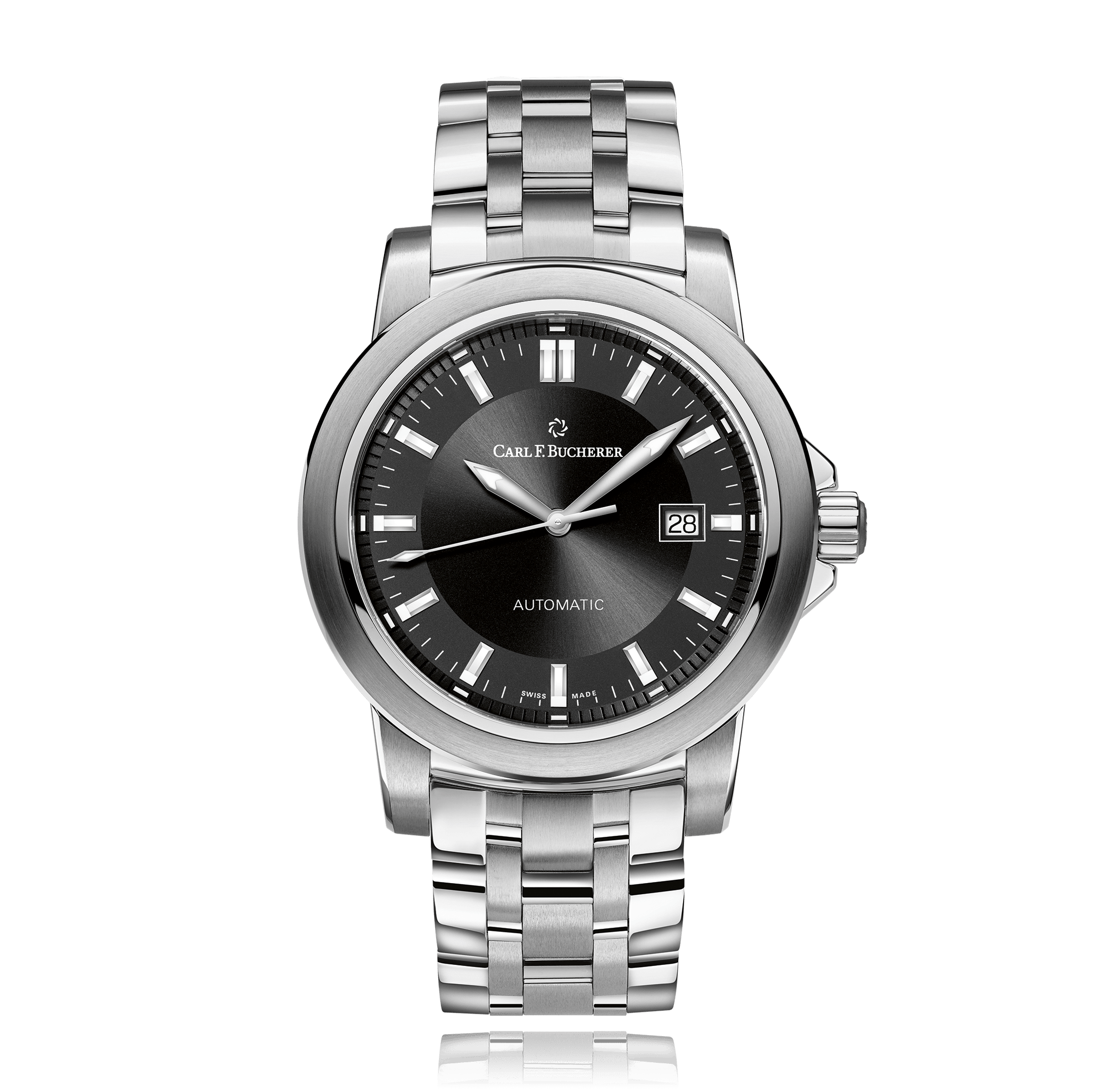 CARL F. BUCHERER Patravi AutoDate 42.6 mm wristwatch, steel automatic with date round 10 atm/screw-down crown dial: black index, steel bracelet, Ref.:00.10636.08.33.21