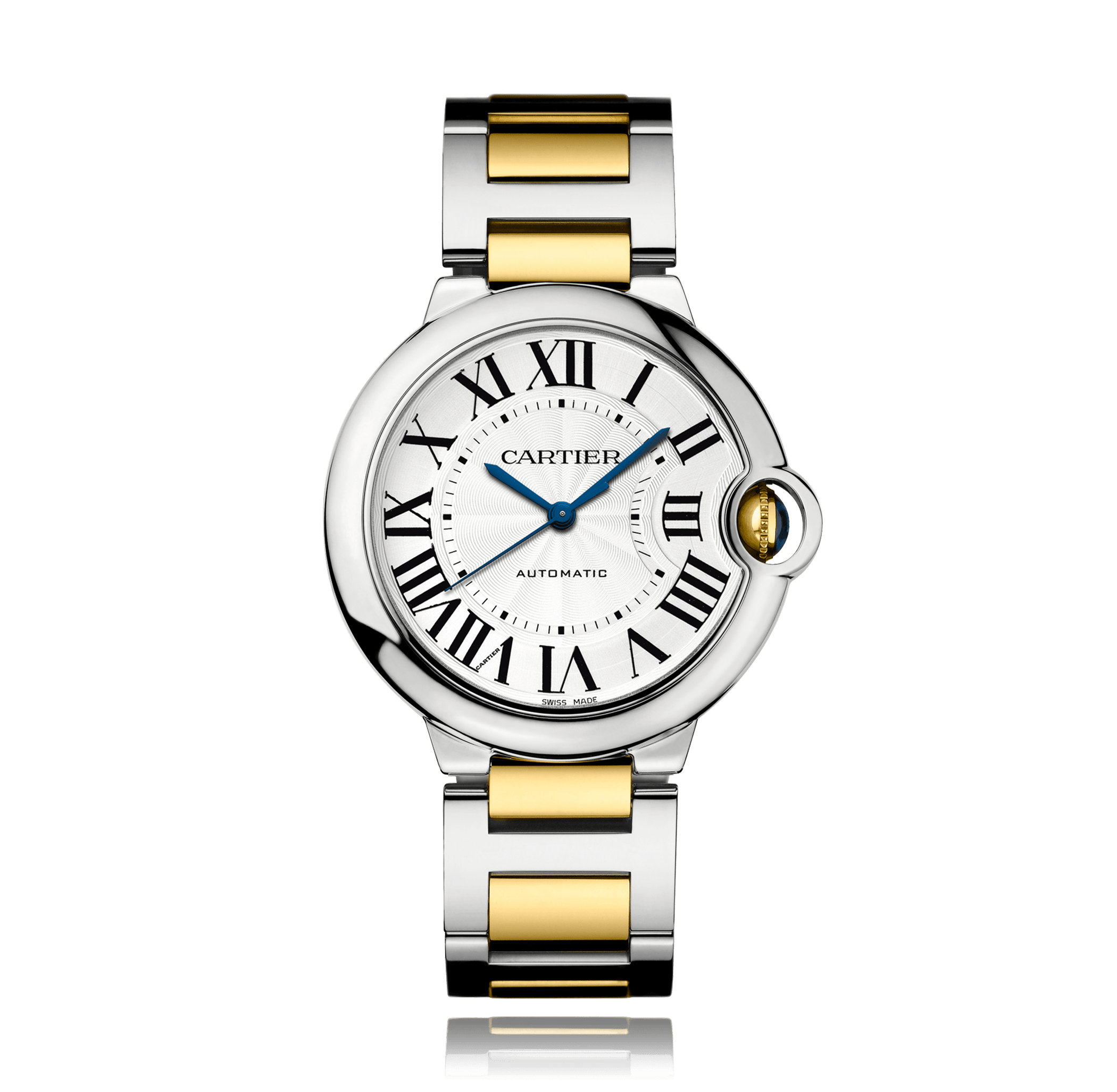 Wristwatch, CARTIER Ballon Bleu de Cartier, 36 mm, medium, 18K steel/yellow gold,. steel/gold bracelet, silver dial with romains, automatic, centre seconds, sapphire-crystal, 3 atm, Goldgewicht 16 g Ref.:W2BB0030