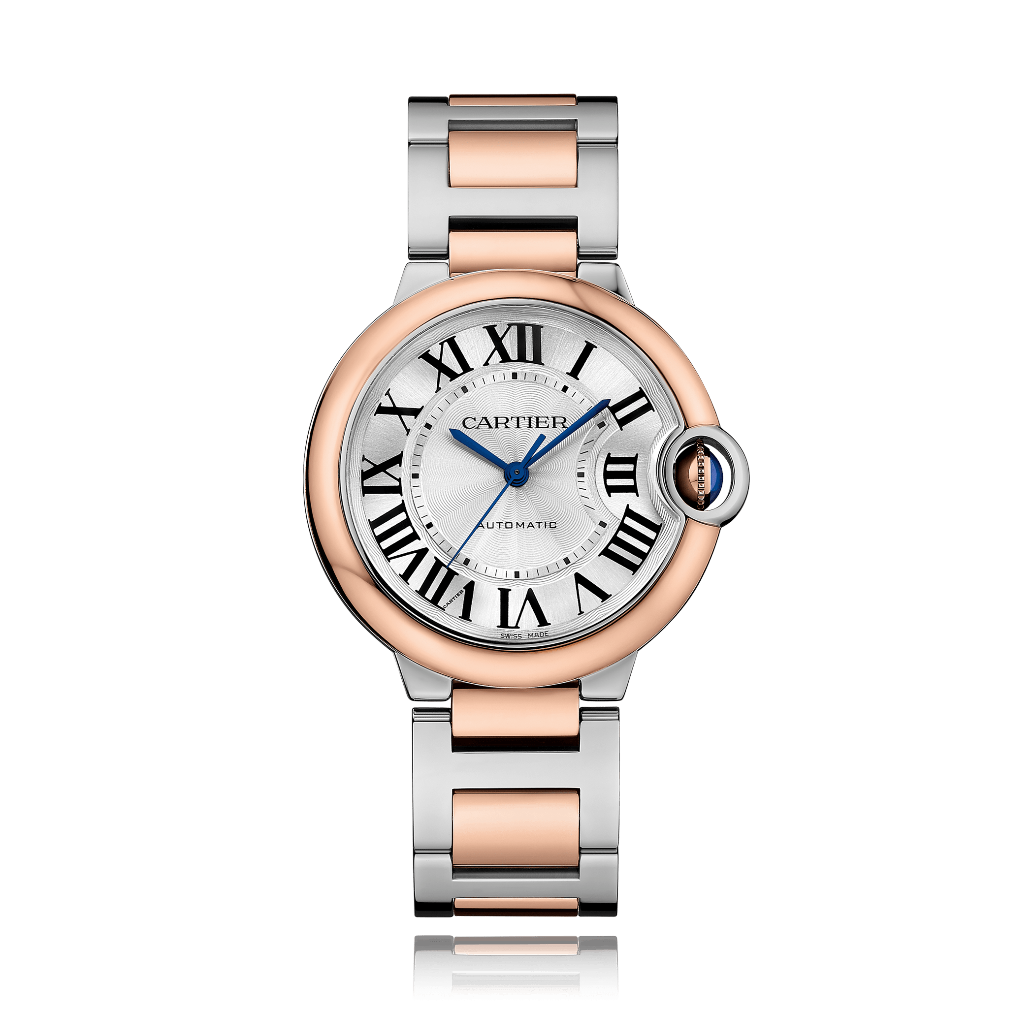 Wristwatch CARTIER Ballon Bleu de Cartier, 36mm, steel/red gold, steel/gold bracelet, silver dial with romains, automatic Cal. 076, sapphire-crystal, 3 atm, Ref.:W2BB0003