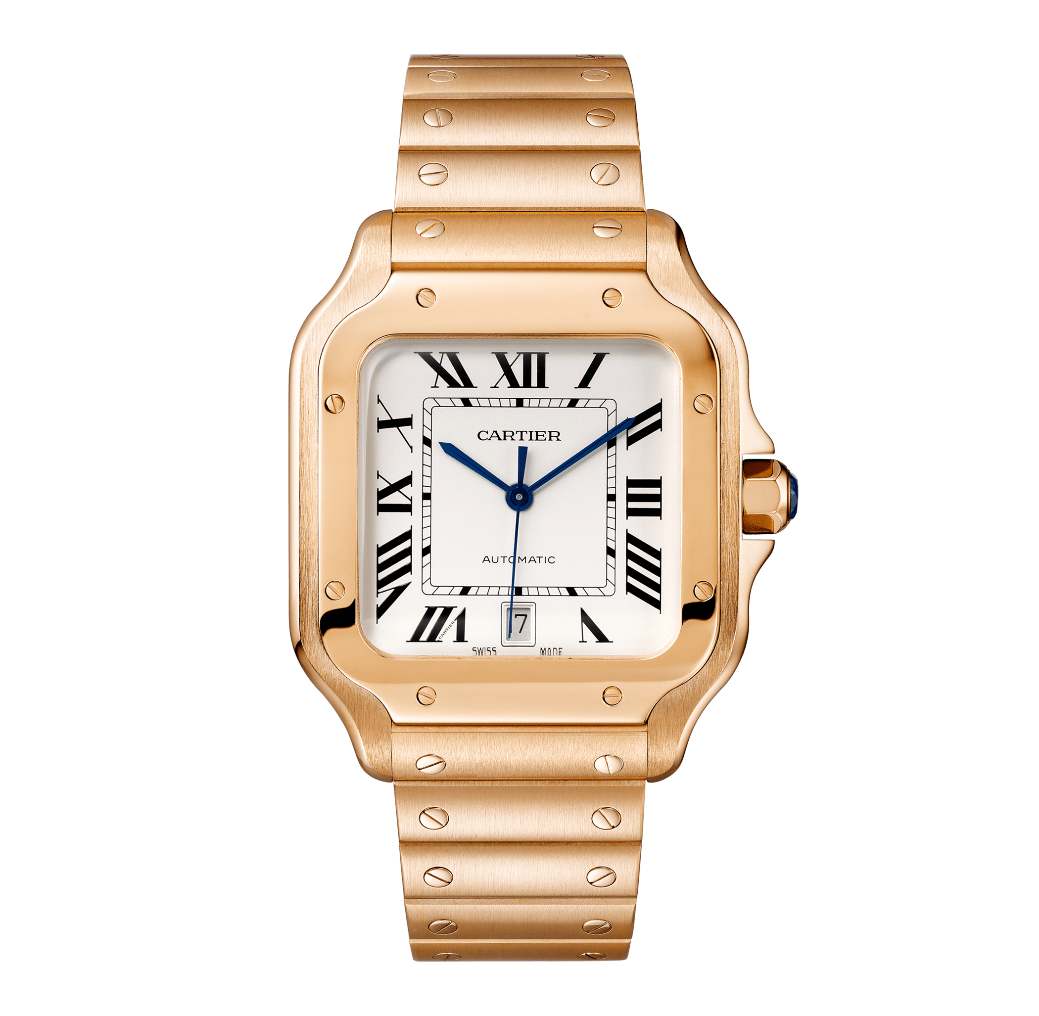 Wristwatch, CARTIER Santos de Cartier 47.5 mm, large, 18K red gold, gold-bracelet, white dial with romains, automatic, Cal. 1847MC, centre seconds,, sapphire-crystal, 10 atm, ef.:WGSA0018