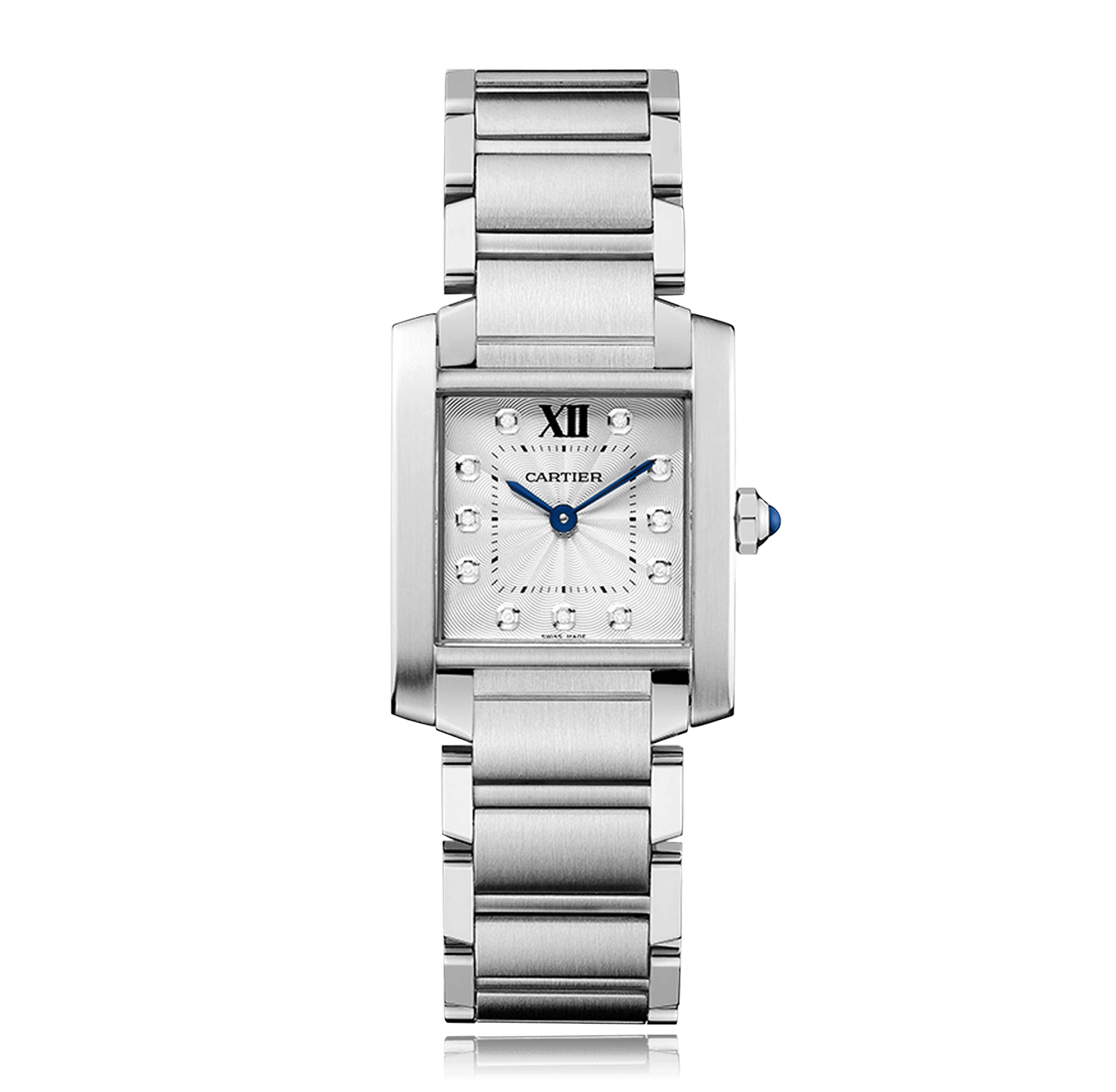 Wristwatch, CARTIER Tank Française, medium, steel, steel bracelet, silver dial with roman / diamonds, quartz,, sapphire-crystal, water-resistant, 11 diamonds, total: 0.04 ct. ef.:WE110007