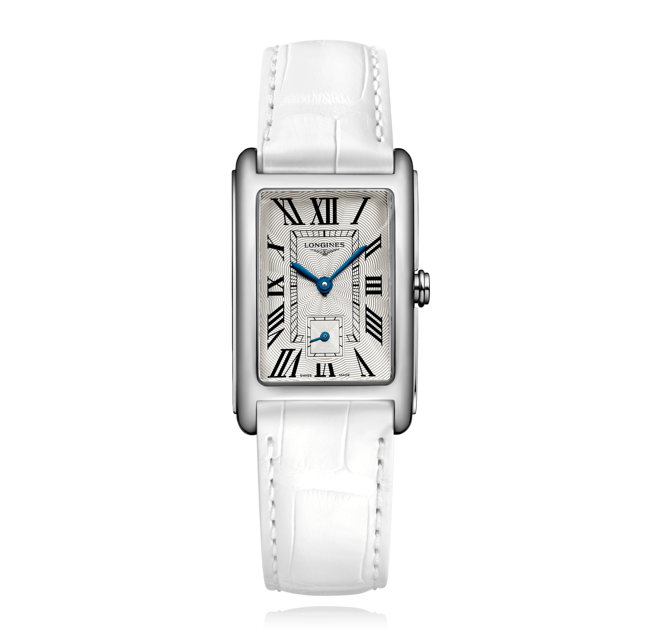 Wristwatch LONGINES Dolcevita Midi, steel, alligator leather strap, with pin buckle, white/enamel dial with romains, quartz Cal. 176, sapphire-crystal, 3 atm, with end of life indicator, Ref.:L5.512.4.71.2