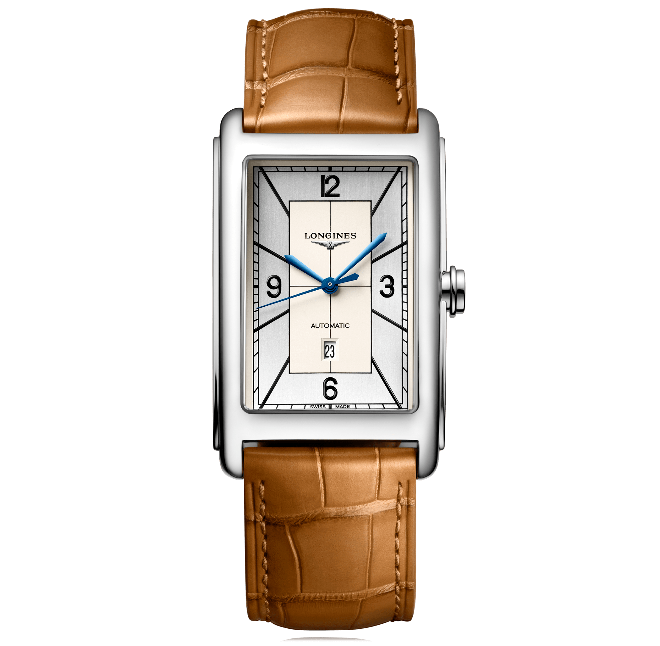 Wristwatch LONGINES Dolcevita Supermaxi, steel, alligator leather strap, with pin buckle, white/enamel dial with arab./Index, automatic Cal. 592, sapphire-crystal, 3 atm, Ref.:L5.767.4.73.3