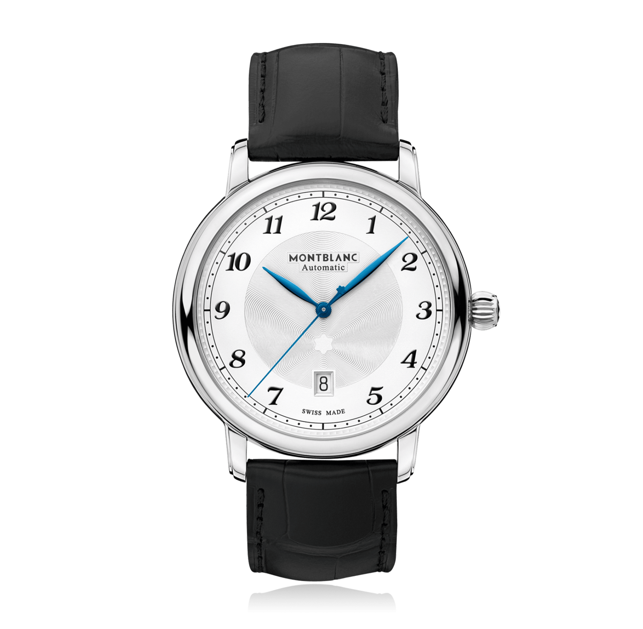 Wristwatch MONTBLANC Star 42mm, steel, leather strap, with pin buckle, silver dial with arabic, automatic Cal. MB M24.01, sapphire-crystal, 3 atm, Ref.:116511