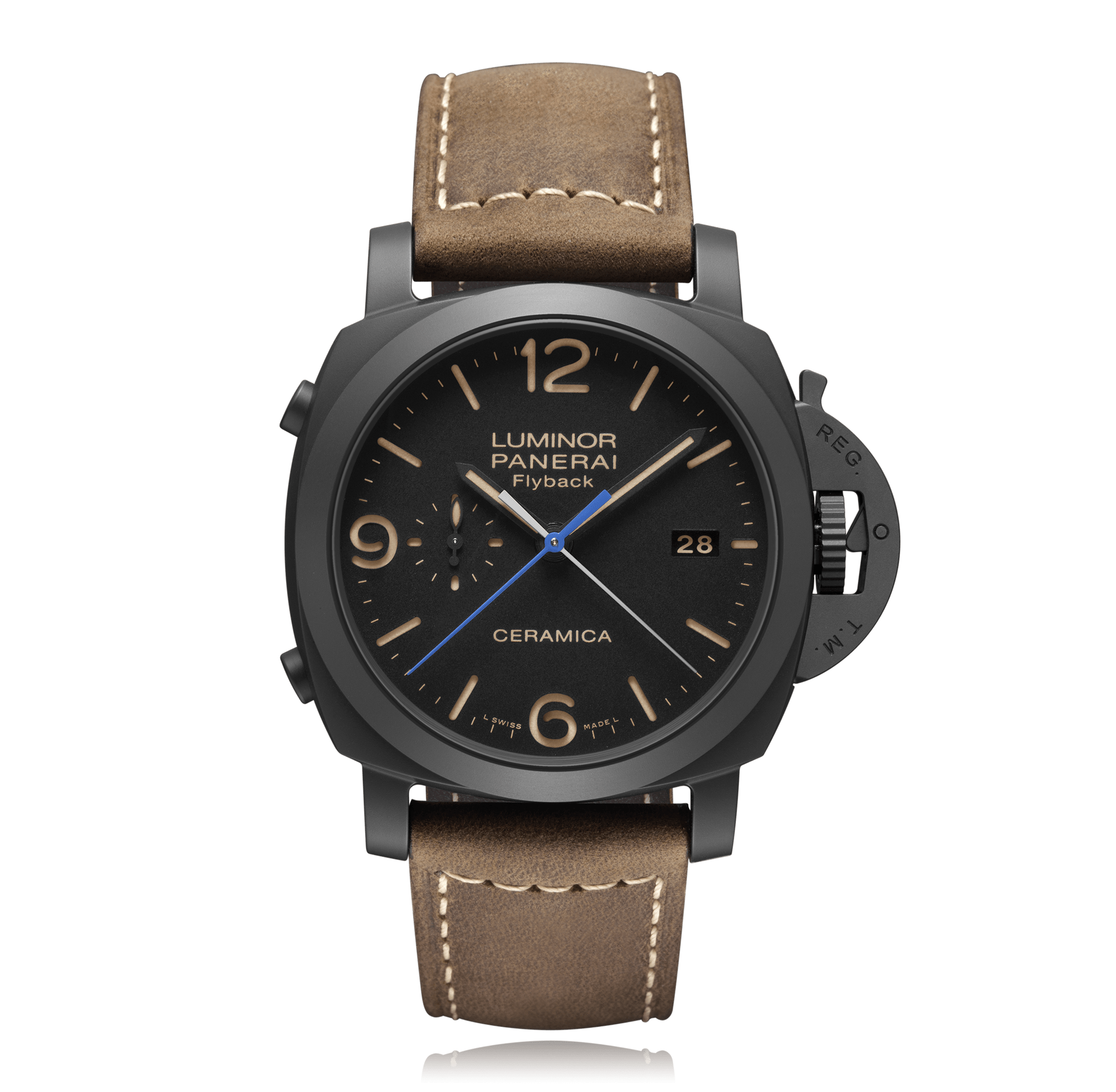 Wristwatch PANERAI Luminor 44mm, ceramic, leather strap, black dial with arab./Index, automatic Cal. P.9100, sapphire-crystal, Ref.:PAM00580