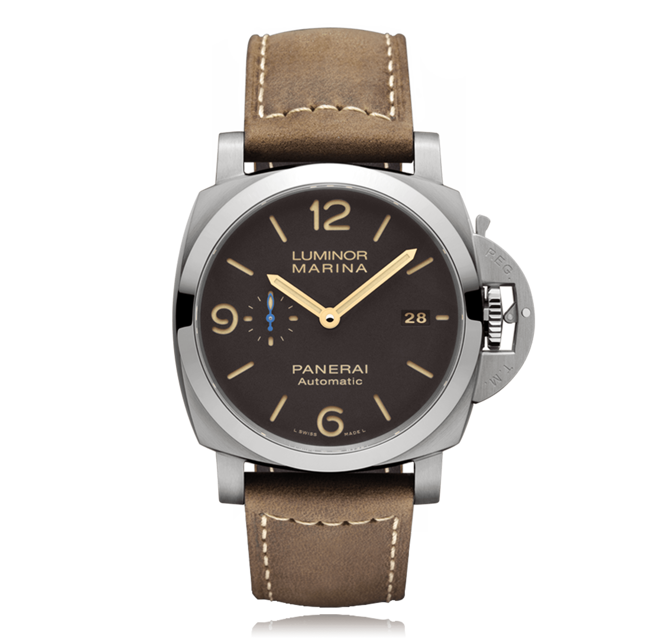 Wristwatch PANERAI Luminor 44mm, titanium, leather strap, brown dial with arab./Index, automatic Cal. P.9010, sapphire-crystal, 30 atm, Ref.:PAM01351