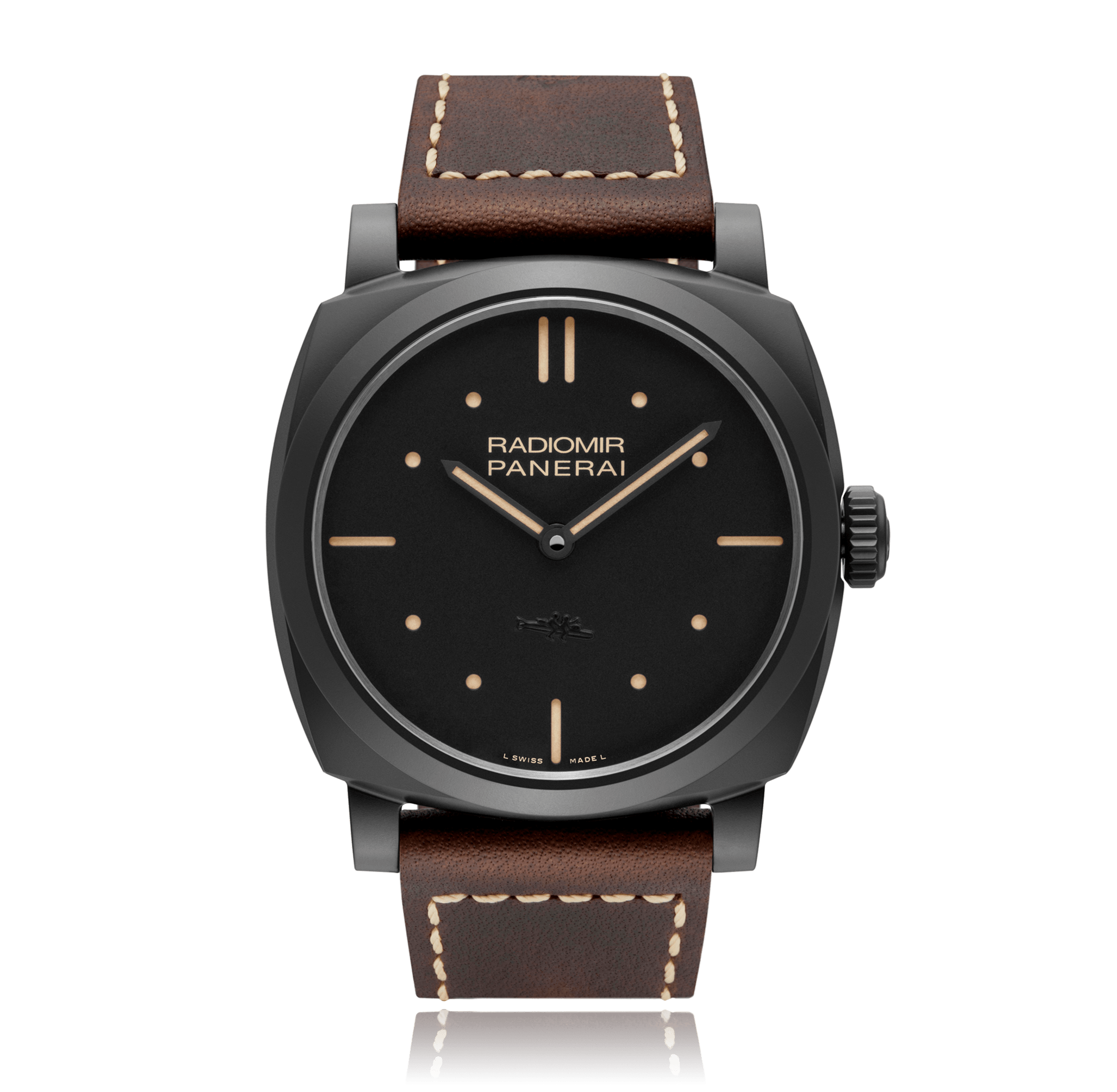 Wristwatch PANERAI Radiomir 48mm, ceramic, leather strap, black dial with index, manual winding Cal. P.3000, sapphire-crystal, Ref.:PAM00577