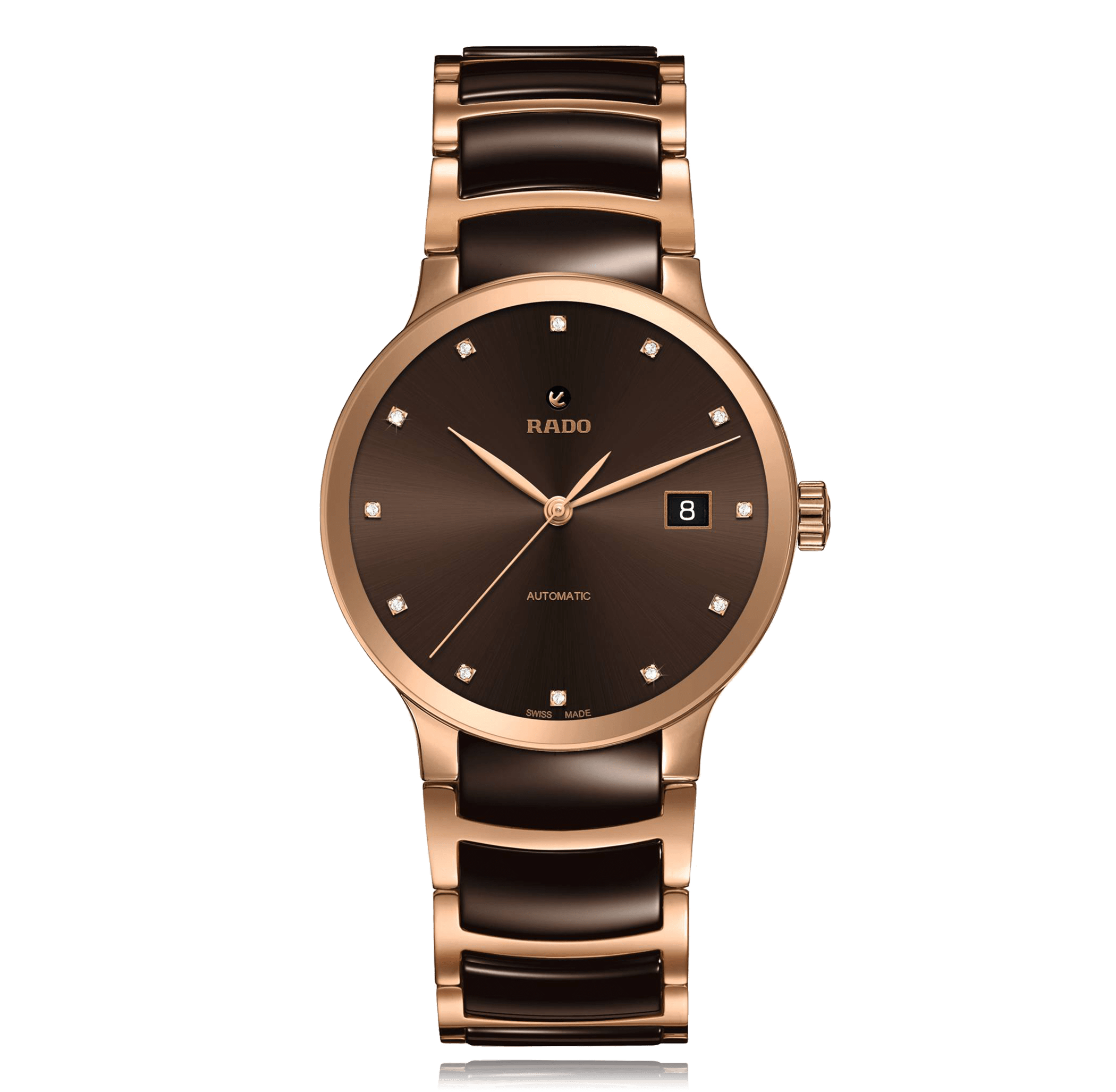 Wristwatch RADO Centrix 38 mm, steel/ceramic, steel/ceramic bracelet, with folding clasp, brown dial with 12 diamonds, automatic Cal. ETA C07.611, sapphire-crystal, 3 atm, Ref.:R30036752