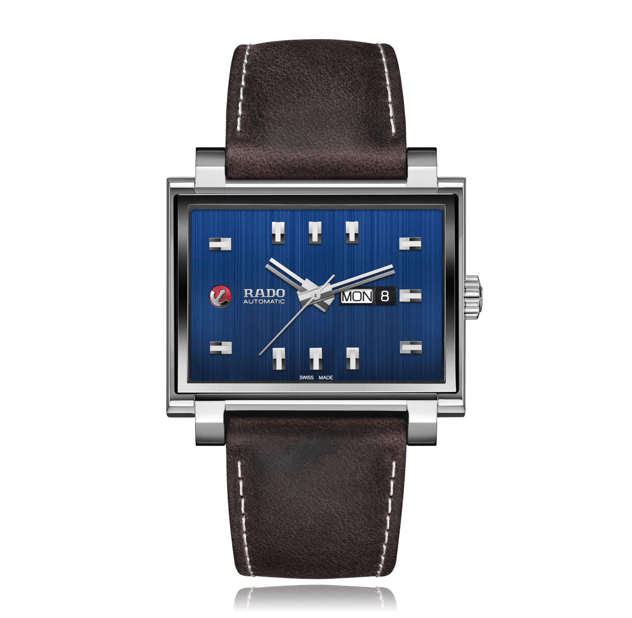 Wristwatch RADO Tradition 44 mm, large, steel, leather strap, blue dial with index, automatic Cal. ETA C07.621, sapphire-crystal, 5 atm, Ref.:R33017205