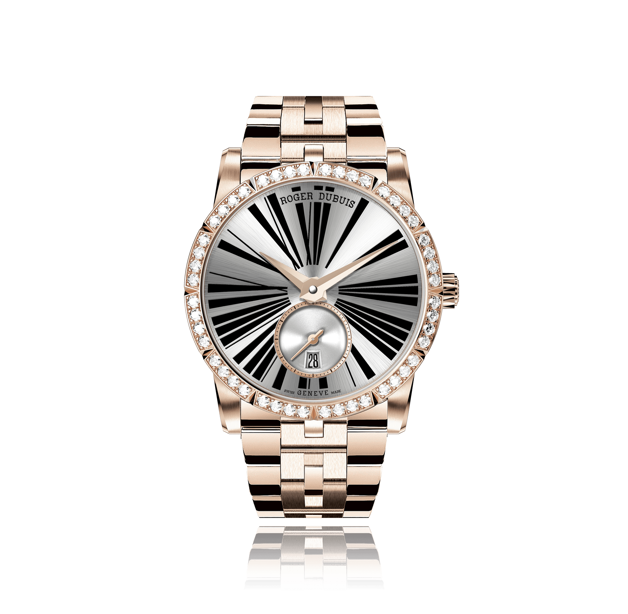 Wristwatch Roger Dubuis Excalibur 36, 36mm, 18K red gold, gold-bracelet, white mother of pearl dial with romains, automatic Cal. RD830, sapphire-crystal, Ref.:RDDBEX0598