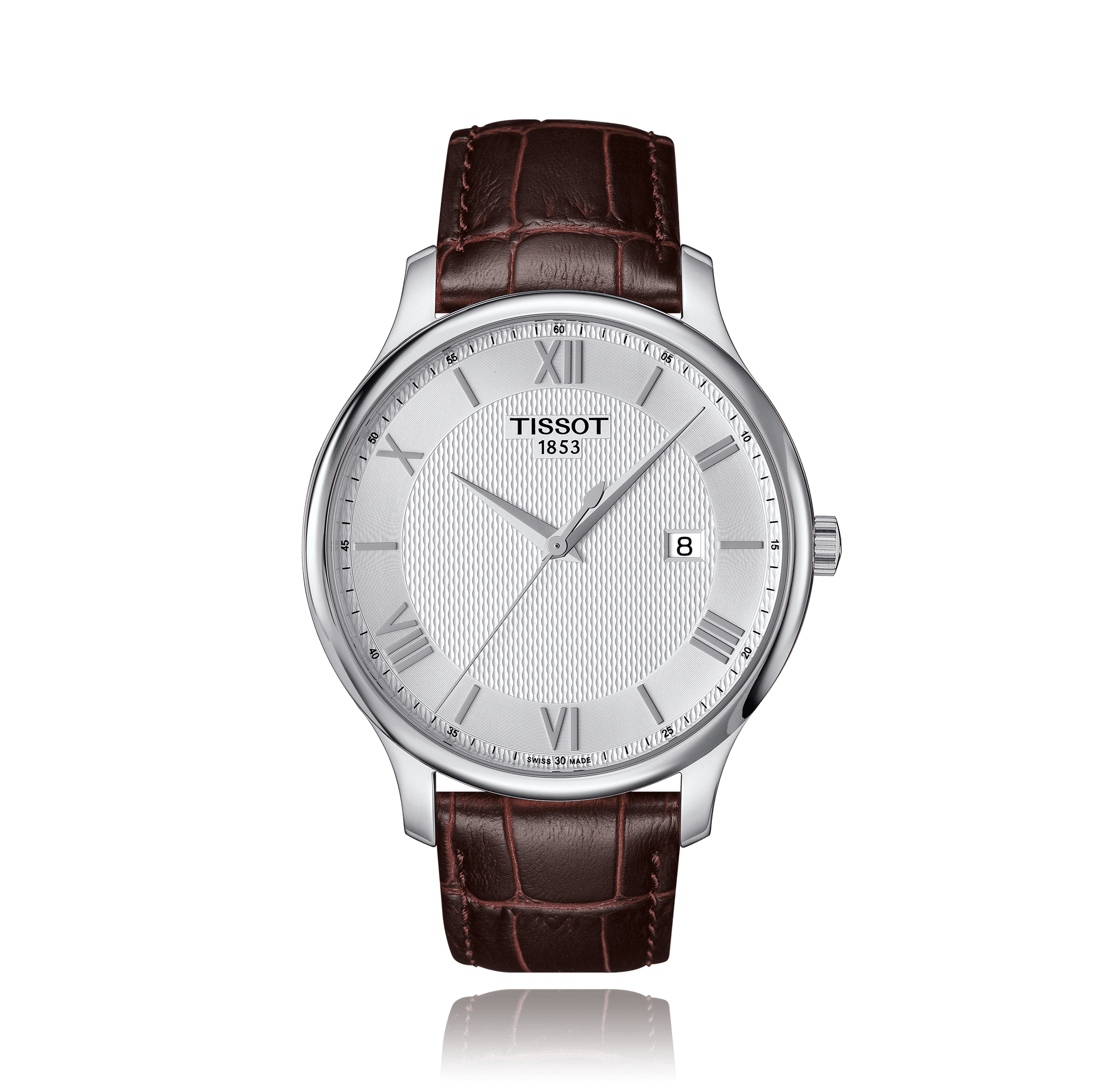 Wristwatch TISSOT T-Classic Tradition, 42mm, steel, leather strap, with folding clasp, silver dial with röm./Index, quartz Cal. F06.111, sapphire-crystal, 3 atm, Ref.:T063.610.16.038.00