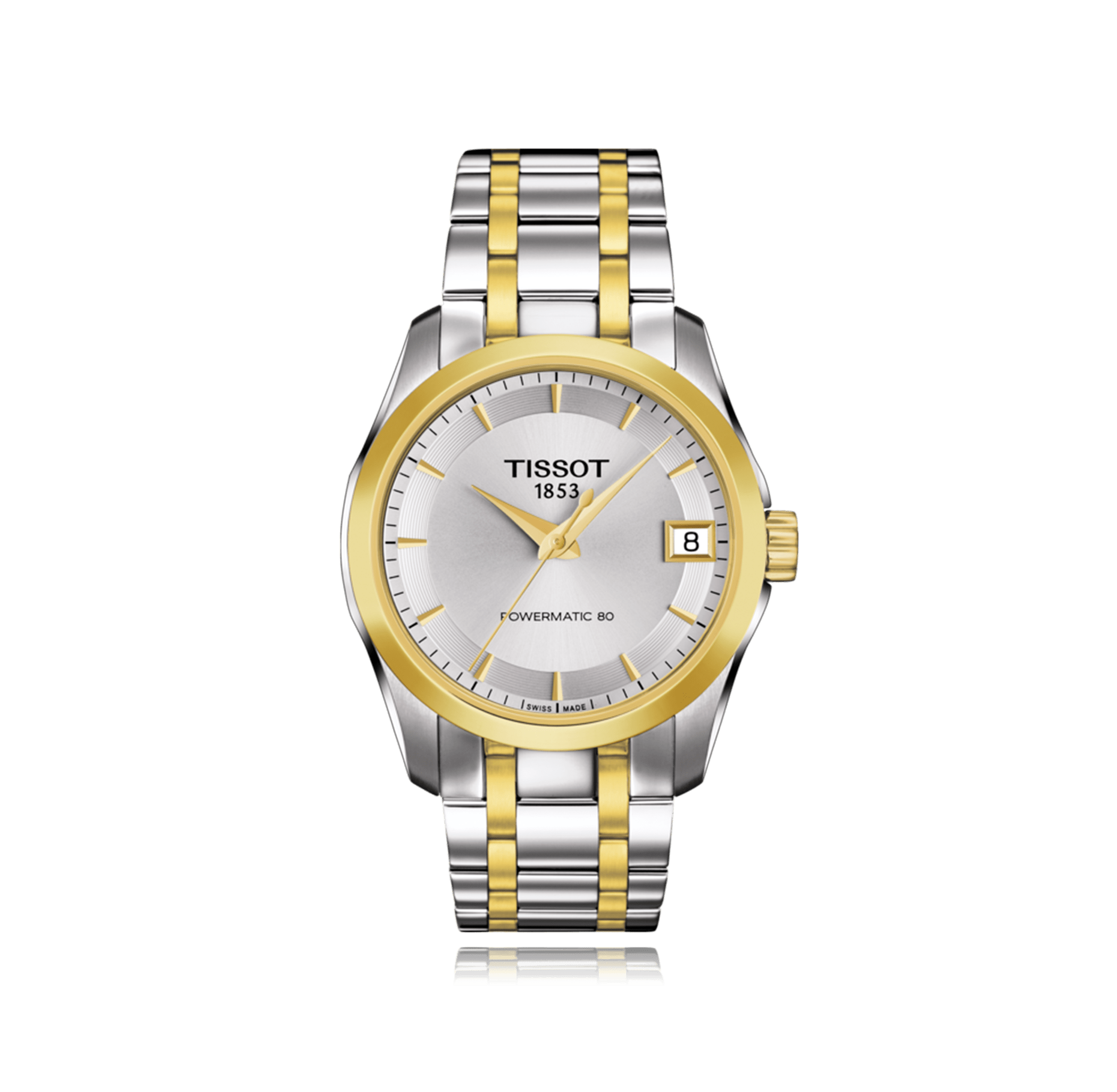 Wristwatch TISSOT T-Classic Couturier, 32mm, Stahl/PVD bico, steel/PVD bracelet, with folding clasp, silver dial with index, automatic Cal. Powermatic 80, sapphire-crystal, 10 atm, Ref.:T035.207.22.031.00