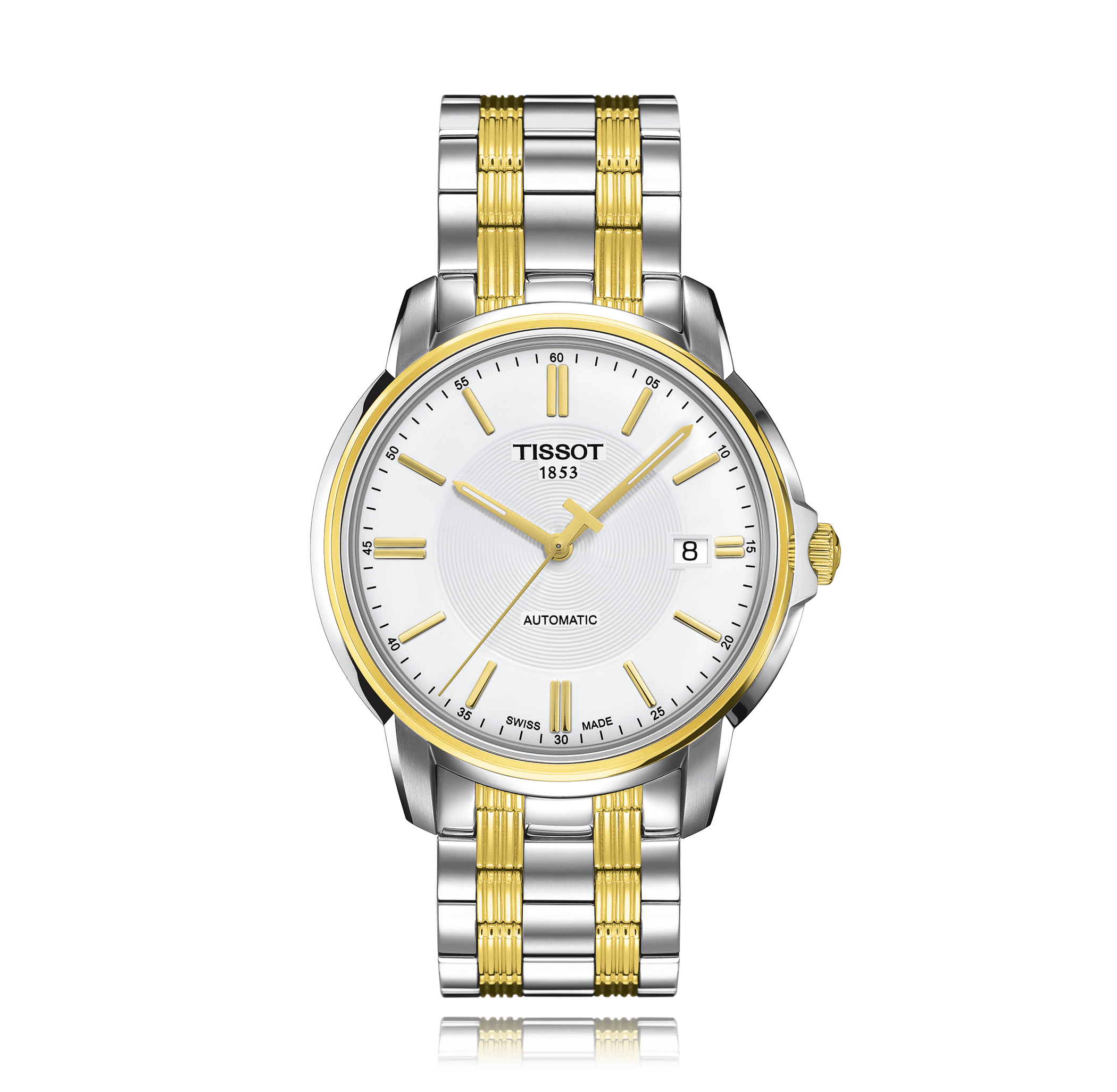 Wristwatch TISSOT T-Classic Automatics III, 39.7mm, bicolour steel/goldplated, steel/gold-plated brac., with folding clasp, white dial with index, automatic Cal. ETA 2824-2, sapphire-crystal, 3 atm, Ref.:T065.407.22.031.00