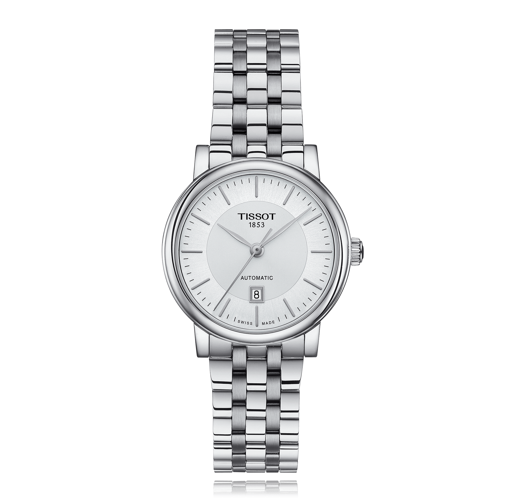 Wristwatch TISSOT T-Classic Carson, 30mm, steel, steel bracelet, with folding clasp, silver dial with index, automatic Cal. ETA 2671, sapphire-crystal, 5 atm, Ref.:T122.207.11.031.00